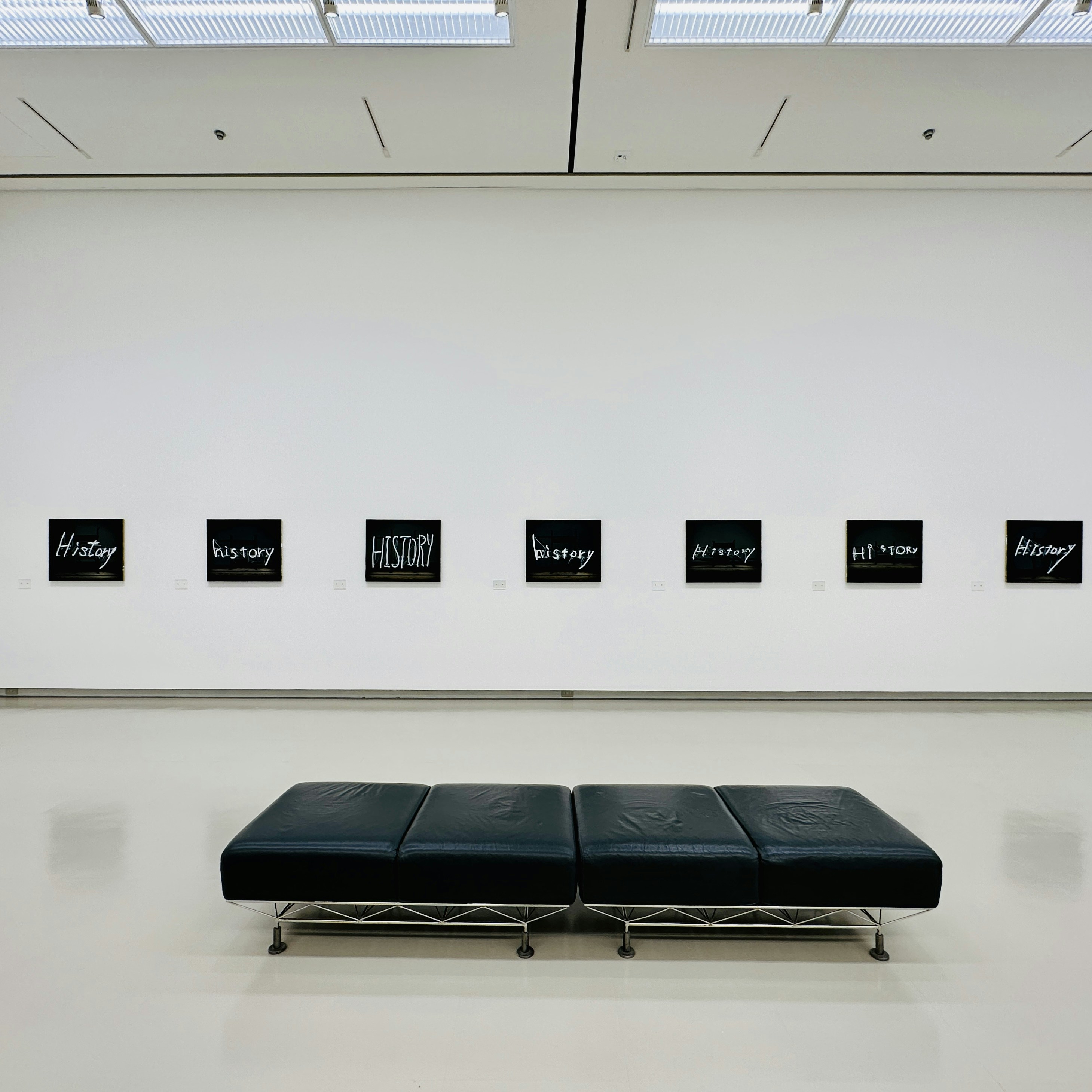 ネオンを成立させている背後のフレームや配線も同等に描いた油彩画の「ネオン」シリーズで注目を集める横山奈美。本展では、様々な人が書いた手書きの文字「history」をもとに描いた新作「Shape of Your Words」シリーズを発表した。歴史とは大きな流れであるとともに、誰もが固有の歴史を持つという、ごく当たり前のことに気付かされる作品群だ。