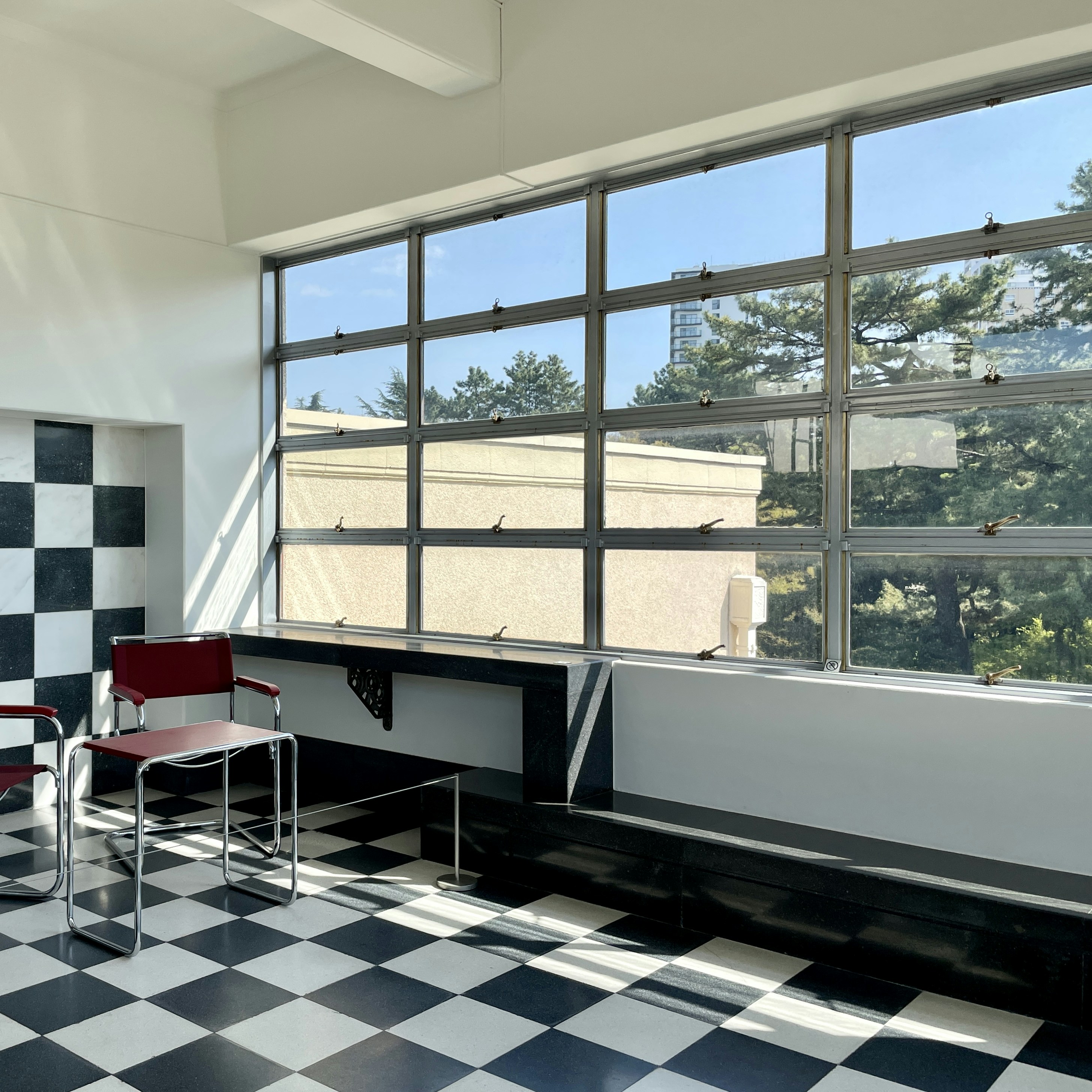 また、アール・デコ建物を特徴づける素材やディテールを実際に触れるコーナーも設けられており、同館の特徴的な建物の魅力を存分に味わうことができる。さらに、通常非公開の本館3階「ウィンターガーデン」も、2019年の建物公開展以来初めて公開されている。温室として設えられたこのスペースでは、白と黒の市松模様の床に朝香宮が購入したマルセル・ブロイヤーの椅子が置かれており、モダンな雰囲気が漂う空間だ。