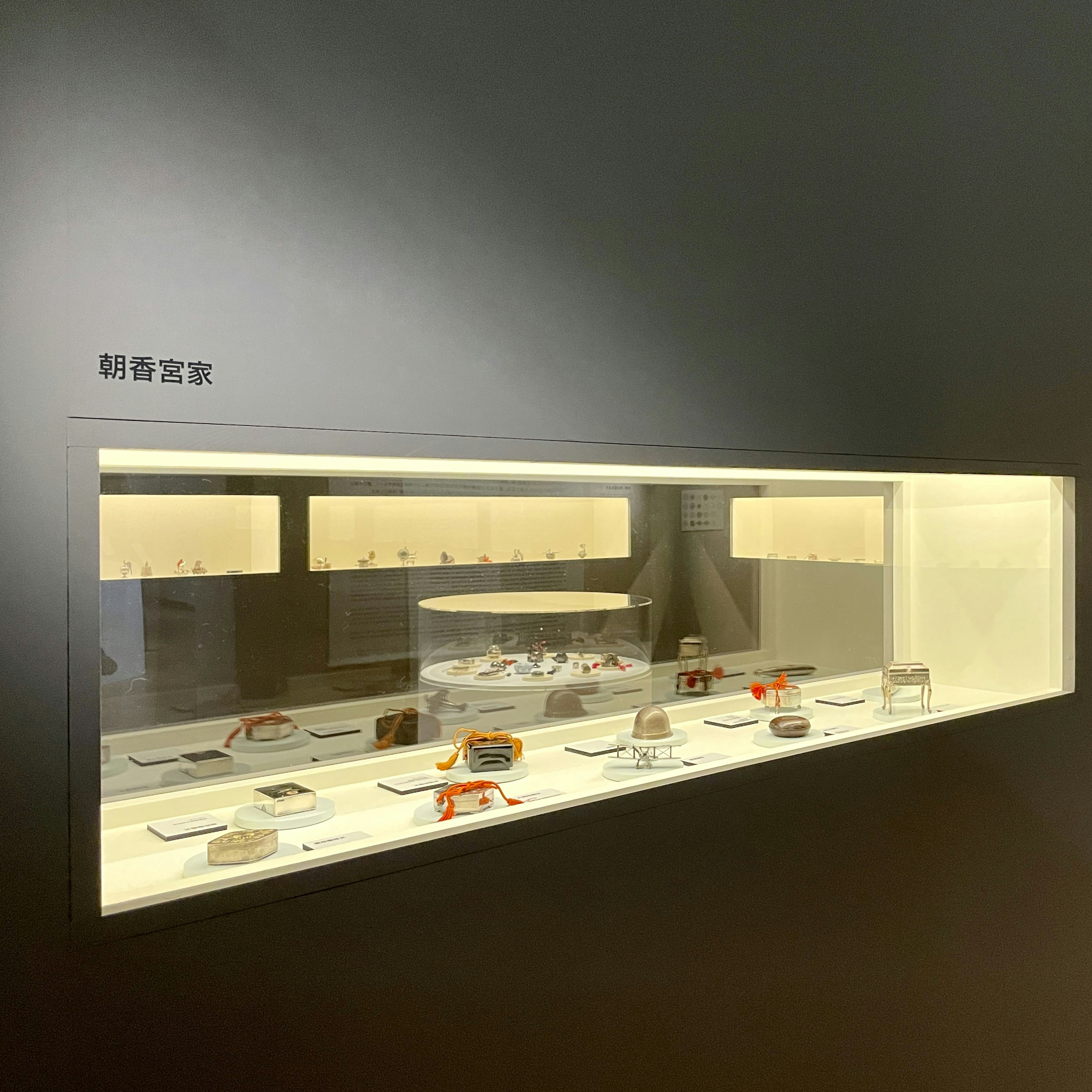 いっぽうの新館では、朝香宮家の第一王女(長女)である紀久子女王が両親である鳩彦王と子妃夫妻の形見として受け継いだ品々や、降嫁先の鍋島侯爵家で守り続けてきた伝来品などが紹介されており、天皇家や皇族・華族家との交流の物語に迫る。
