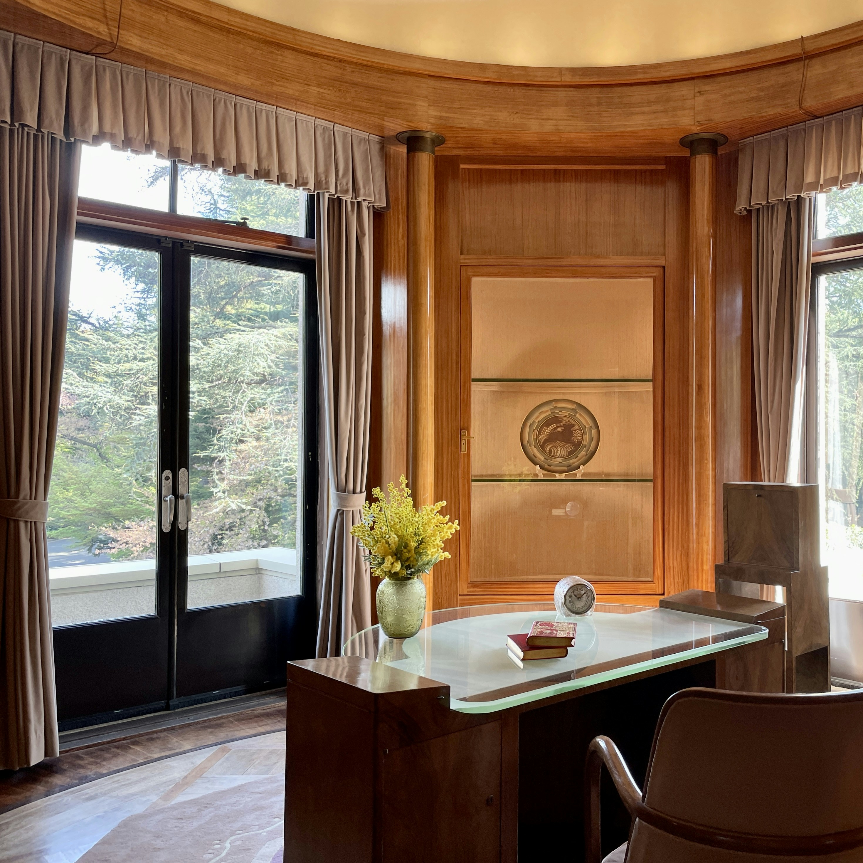 東京都庭園美術館で年に一度開催されている建物公開展。今年は、「邸宅の記憶」をテーマに、邸宅の主であった朝香宮家の人々に焦点を当て、宮邸時代の家具や調度を用いた邸宅空間を再現した展示が開催中。会期は6月4日まで。
