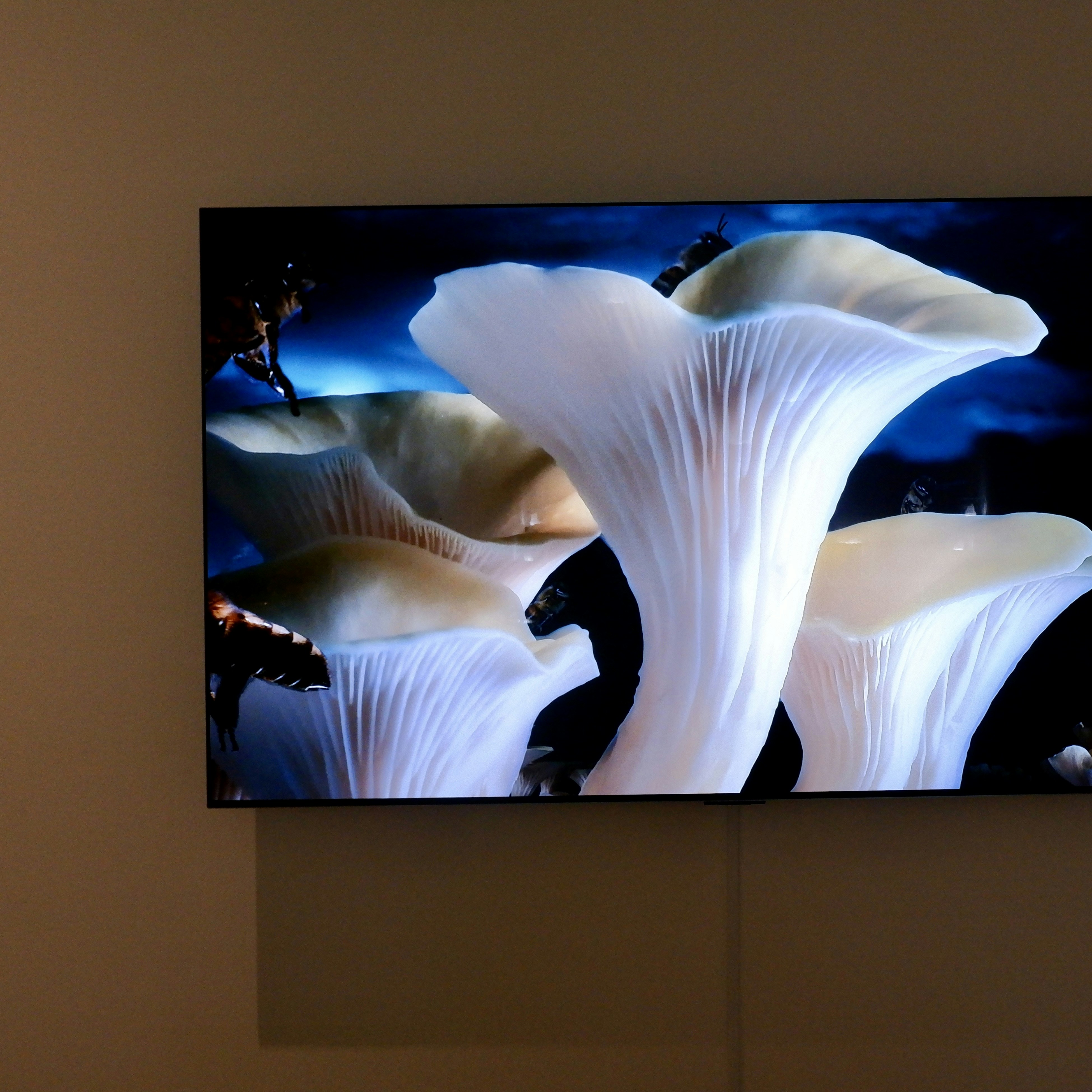 ツァイ・チャウエイ(蔡佳葳) の《豆腐にお経》と《円Ⅱ》はどちらも短い映像作品。これまでに同館で開催された「シンプルなかたち展:美はどこからくるのか」(2015年)「MAMコレクション013:さまざまな線、宇宙のぜんぶ」(2021〜22年)でも展示されてきた、館長の片岡も愛着のある作品だという。