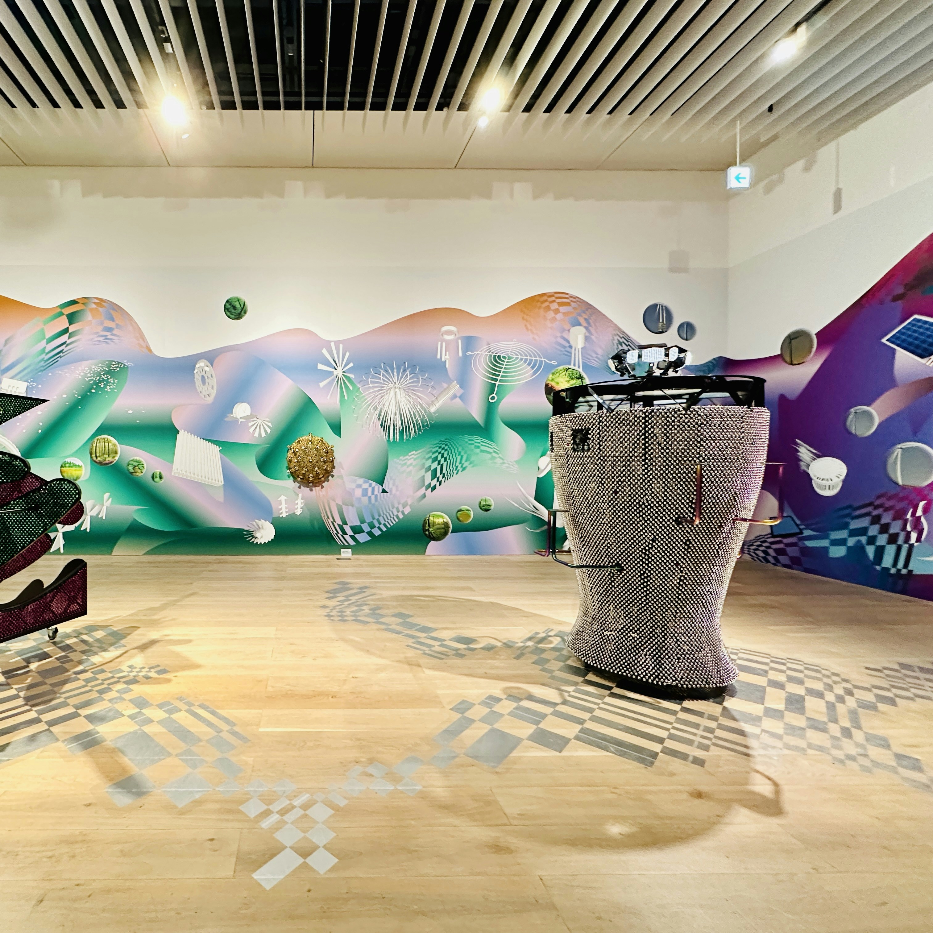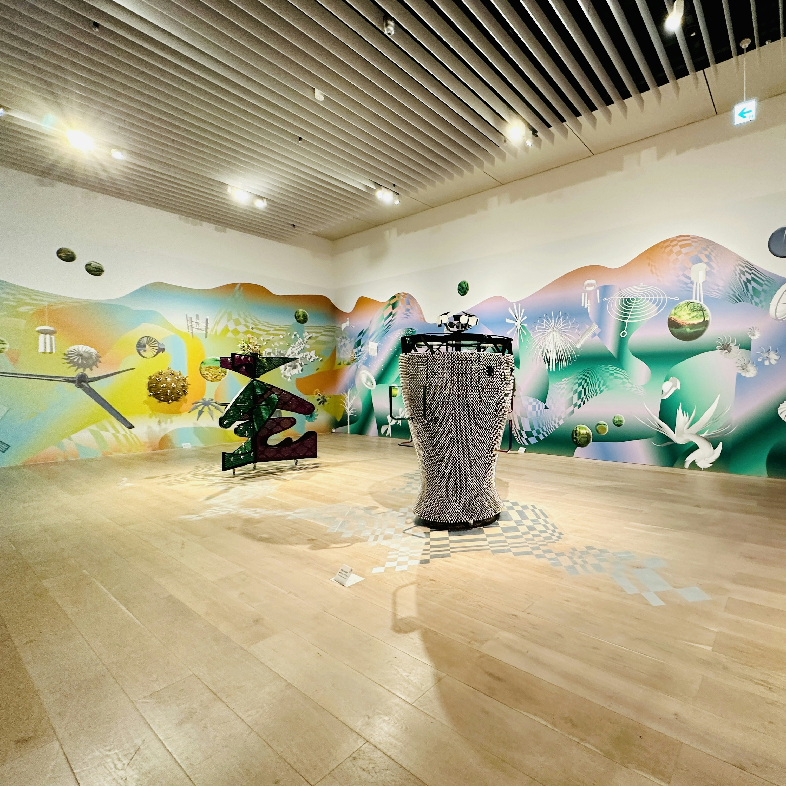 壁面が《ソニック・ローテーティング・半球上のどこかへの入口たち #25》(2023)