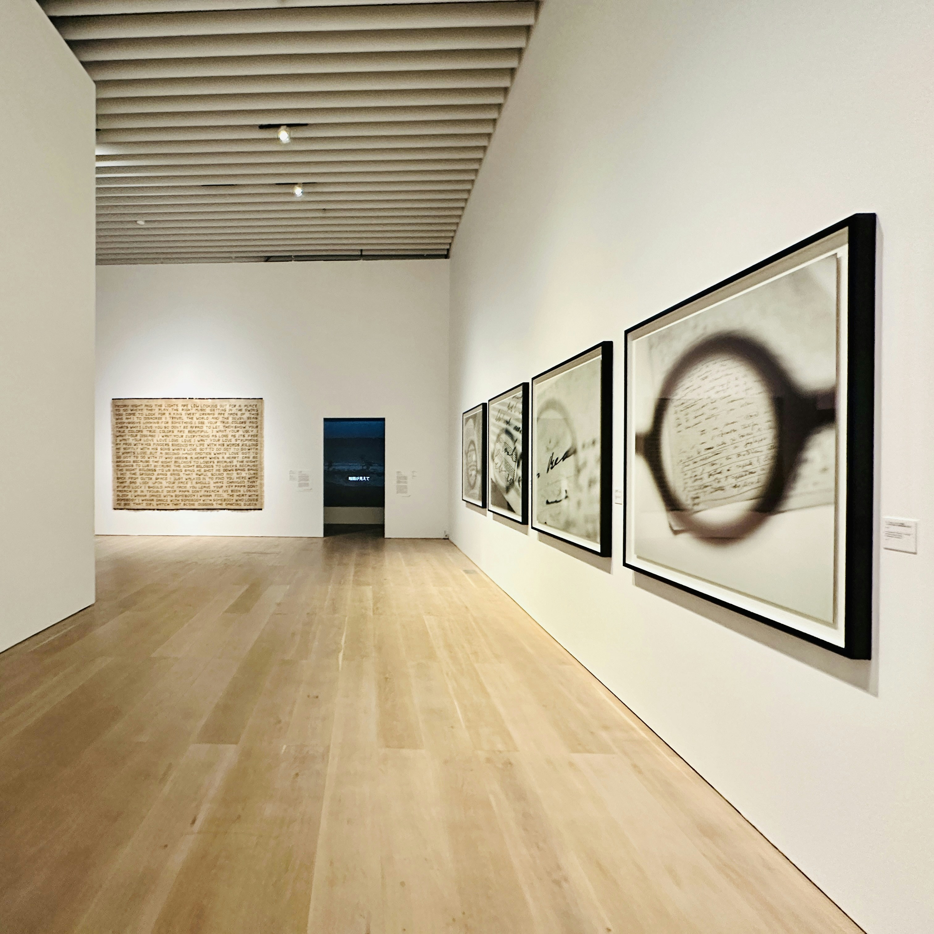 このほかにも、米田知子が近現代の知識人が使用した眼鏡とゆかりある文章を組み合わせ撮影したモノクロの「見えるものと見えないもののあいだ」シリーズや、本展のビジュアルにも採用されてきたワン・チンソン(王慶松)の大型写真作品《フォロー・ミー》なども展覧されている。