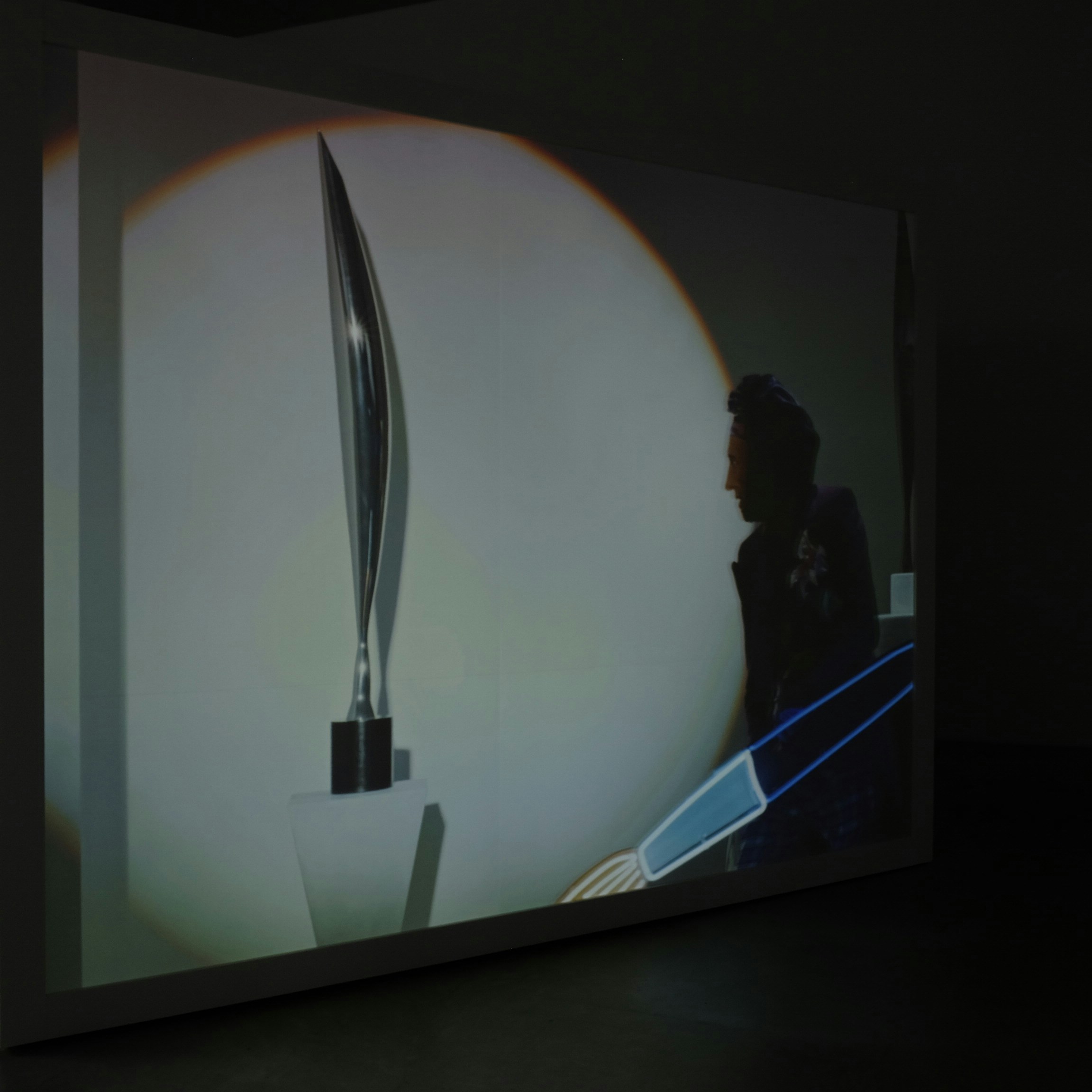 本作の横にある窓ガラスには、ネオンが描くツタと葉が写り込んでいる。我々の身近にあるガラスという存在が、映像機器がない時代から存在する「映る」媒体であったという歴史も意識させられる。