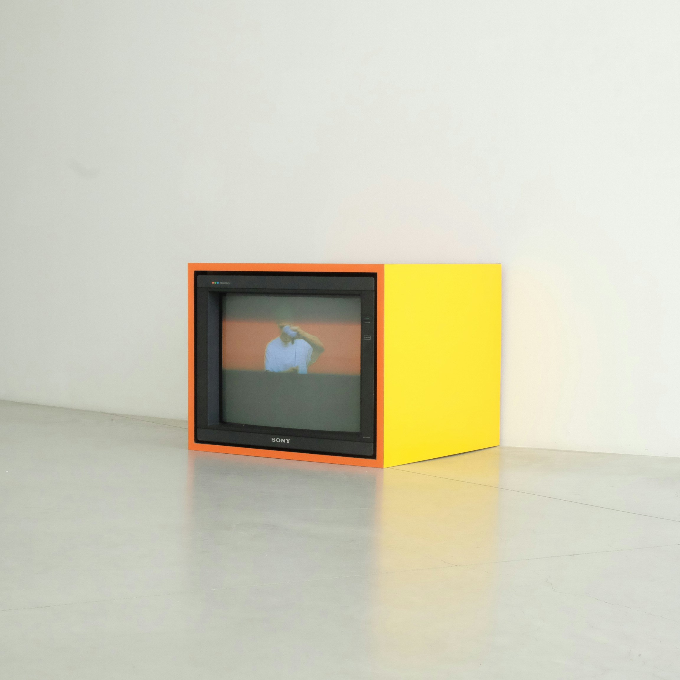 展覧会を見終えれば、本展タイトルの「新鮮な地獄」とは、日々情報の圧力にさらされている現代社会のことだと感じるし、またこの「地獄」から逃れる術を考えさせられもする。しかし、ダ・コルテは各映像作品をブラウン管テレビを思わせる巨大な箱型の什器に囲われたモニターで展示しており、そのカラフルな「映える」ルックスに私たちはスマートフォンのカメラを向けずにはいられない。本展は、情報に苦しみながらも、同時に情報を求めて小さな液晶画面を覗きつつさまよう私たちの姿が、鏡のように映し出される展覧会でもある。