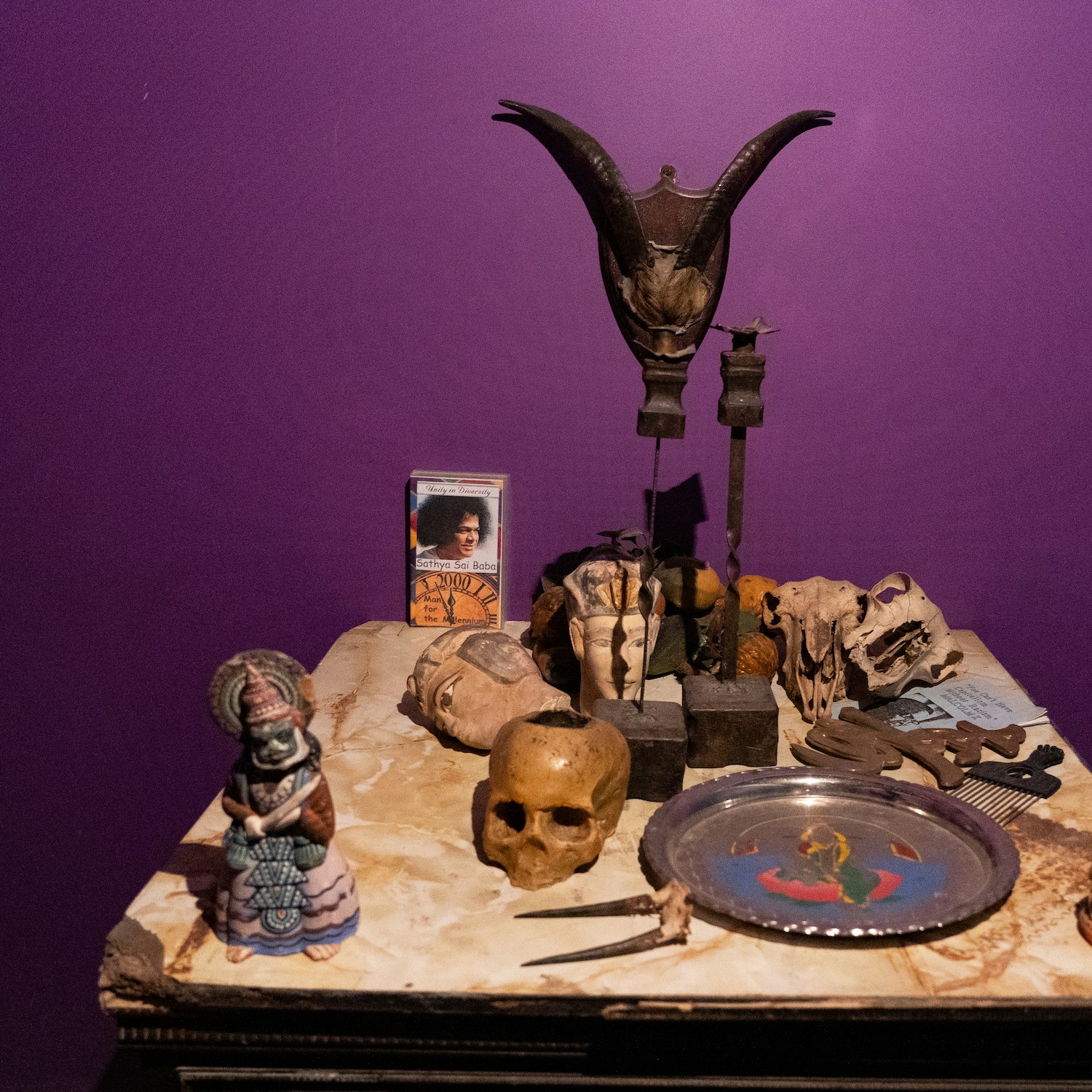 ドアを開閉して入る部屋はどれも、熱狂した後になんらかの理由で中断した事業や失敗した政治運動を振り返るような陰鬱さにあふれている。薄暗い場所でこうした謎めいた大量のものを見せる行為は、洞窟に手形を残した人類の祖先のようにネルソンが自身の存在を示す芸術行為であると同時に、作品を発表した当時の人々がものを見ることに忍耐力がないようにみえたことへの反発でもあったという。「物事が何を意味するか、何を意味するようになるか」を経験させるための装置なのだ。