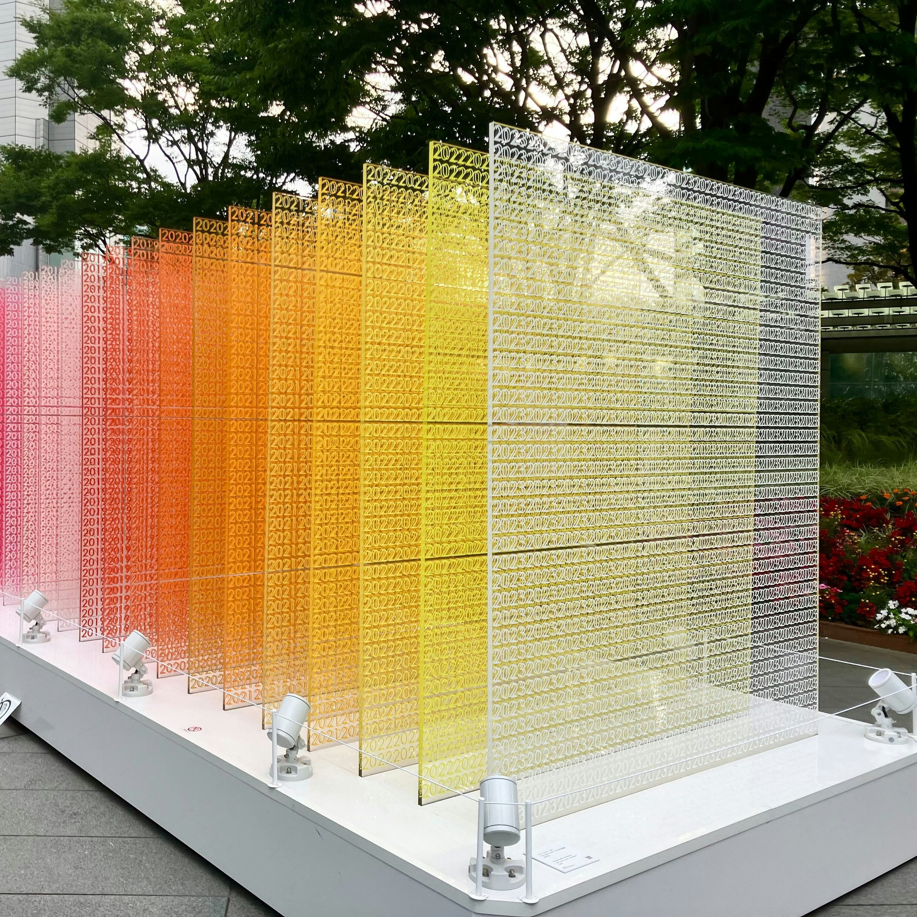 六本木ヒルズのエリアからは3つの作品を紹介する。ヒルズ前の66プラザでは、フランス出身のアーティスト、エマニュエル・ムホーによる記憶のインスタレーションが展開されている。100色のレイヤーによるグラデーションは過去の時間の流れを示しており、本作を通じて鑑賞者が記憶に思いを馳せる機会を創出するという。