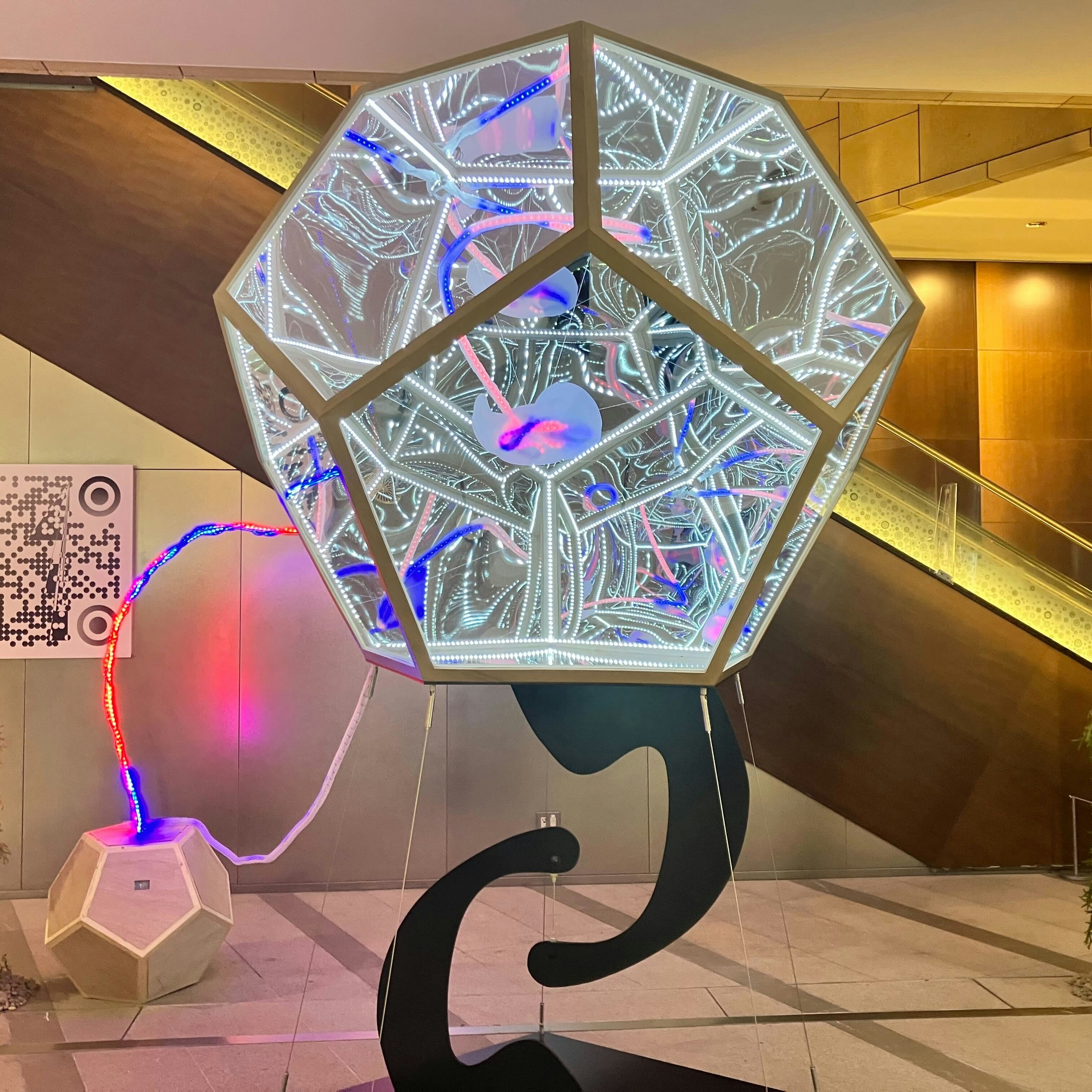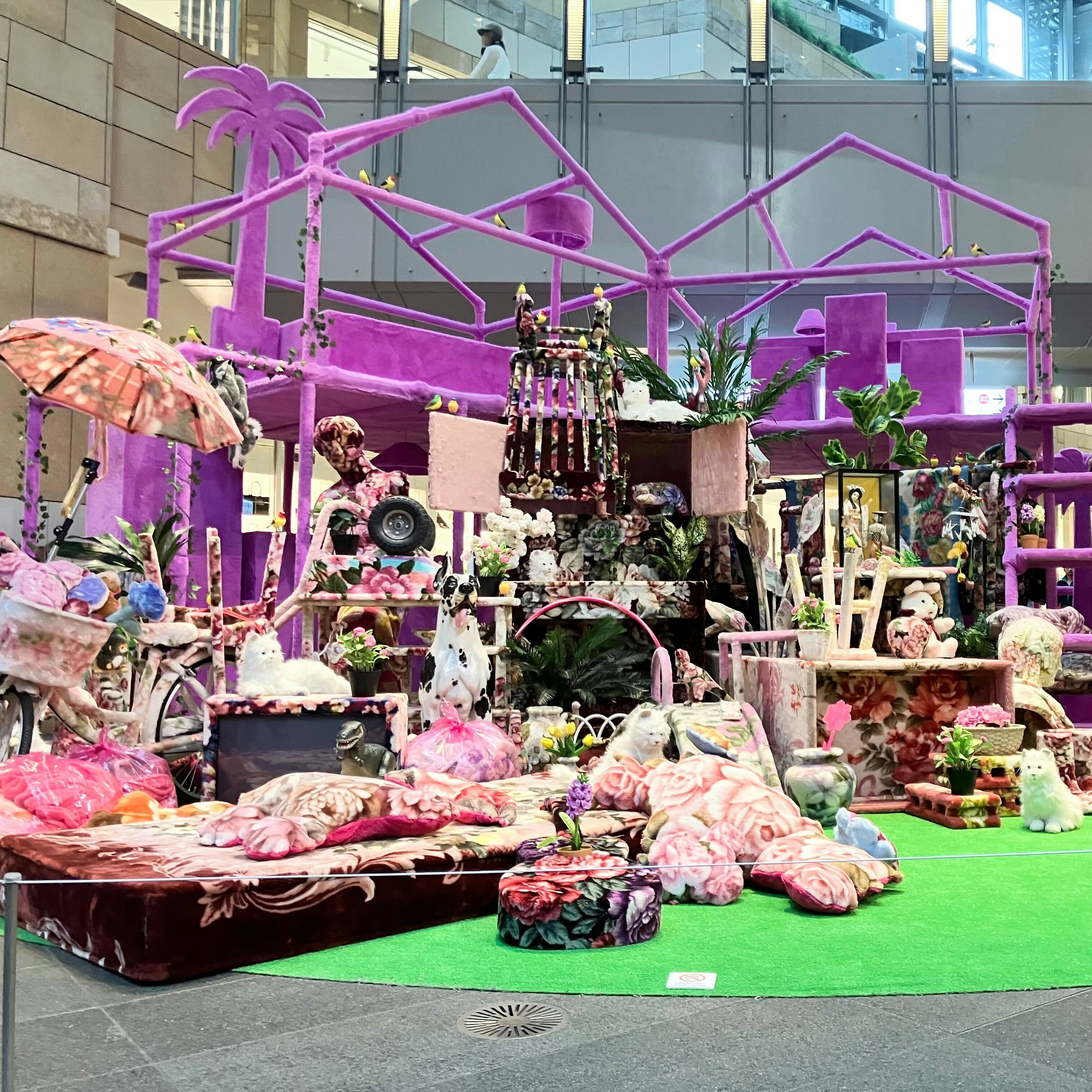 ヒルズ内には、かつての「西洋への憧れ」を昭和43年頃に流行した花柄毛布やリカちゃんハウスで表現した江頭誠による《DXもふもふ毛布ドリームハウス》や、日本各地に伝わる謎の古神「シュク」の現代的な憑座(よりまし)として大小島真木+Maquisによるサイボーグ御神体《SHUKU》が展示されており、商業施設内とアートが交差する独特な空間をつくり上げている。
