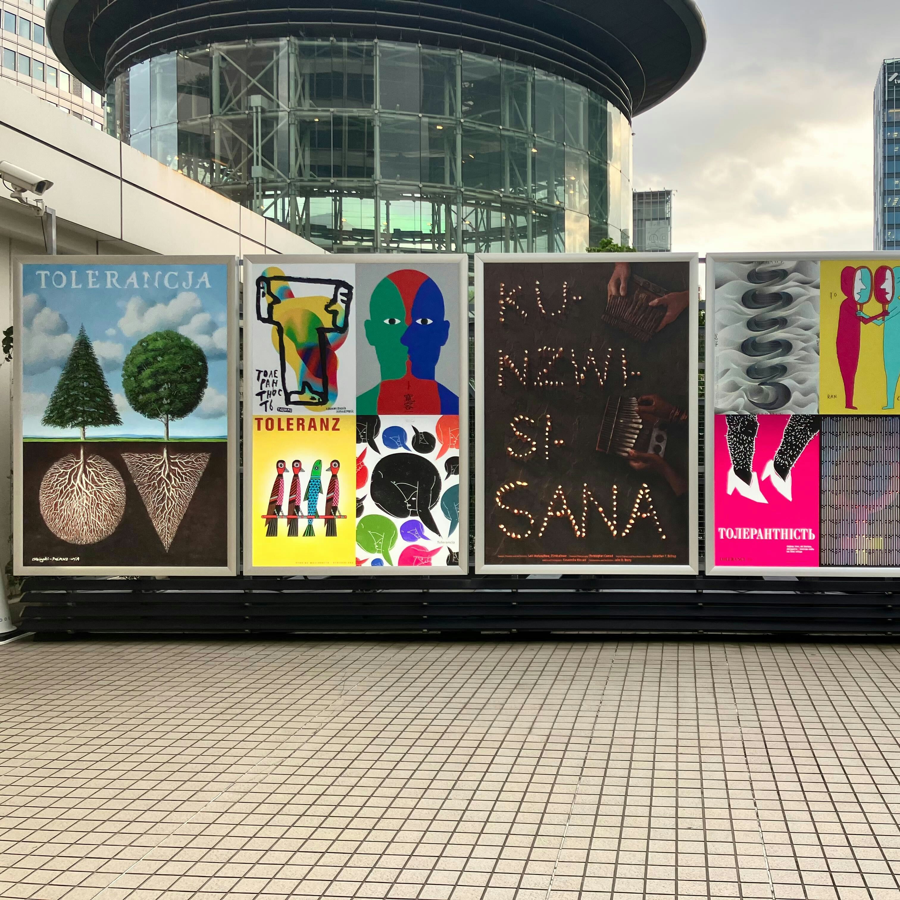 東京ミッドタウン・国立新美術館方面へ向かう途中の六本木商店街にもアートナイトのプログラム作品が点在しているためお見逃しなく。世界40ヶ国、150回以上開催され、地球上で拡散を続けるポスター展《トレランス・ポスター展》が日本初上陸しているほか、仮囲い上に展示されている松田ハルやナカミツキによる大型平面作品も、六本木の街なかに溶け込みつつも存在感を放っている。