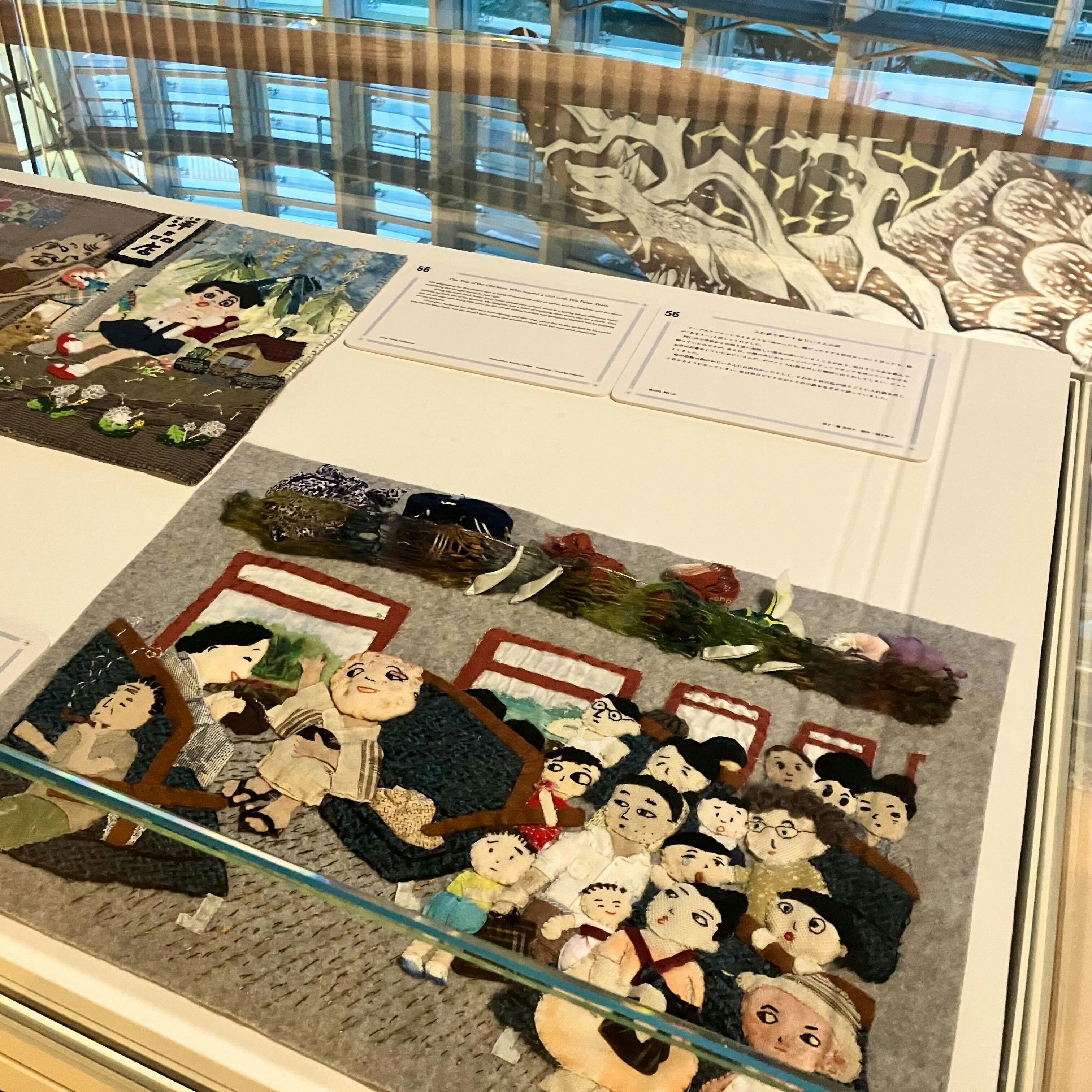 また同会場には、鴻池が重要なモチーフのひとつとする狼からその目線を獲得するための《狼ベンチ》をはじめ、2014年から継続されてきた手芸を用いたプロジェクト《物語るテーブルランナー》、《陸にあがる》、《アースベイビー》といった各地で展示されてきた作品が点在している。これらの作品群は鑑賞者一人ひとりに対し、人間と自然の関係性やその営みといった大きなつながりを、美術館という枠を超えて気づかせてくれるものだ。