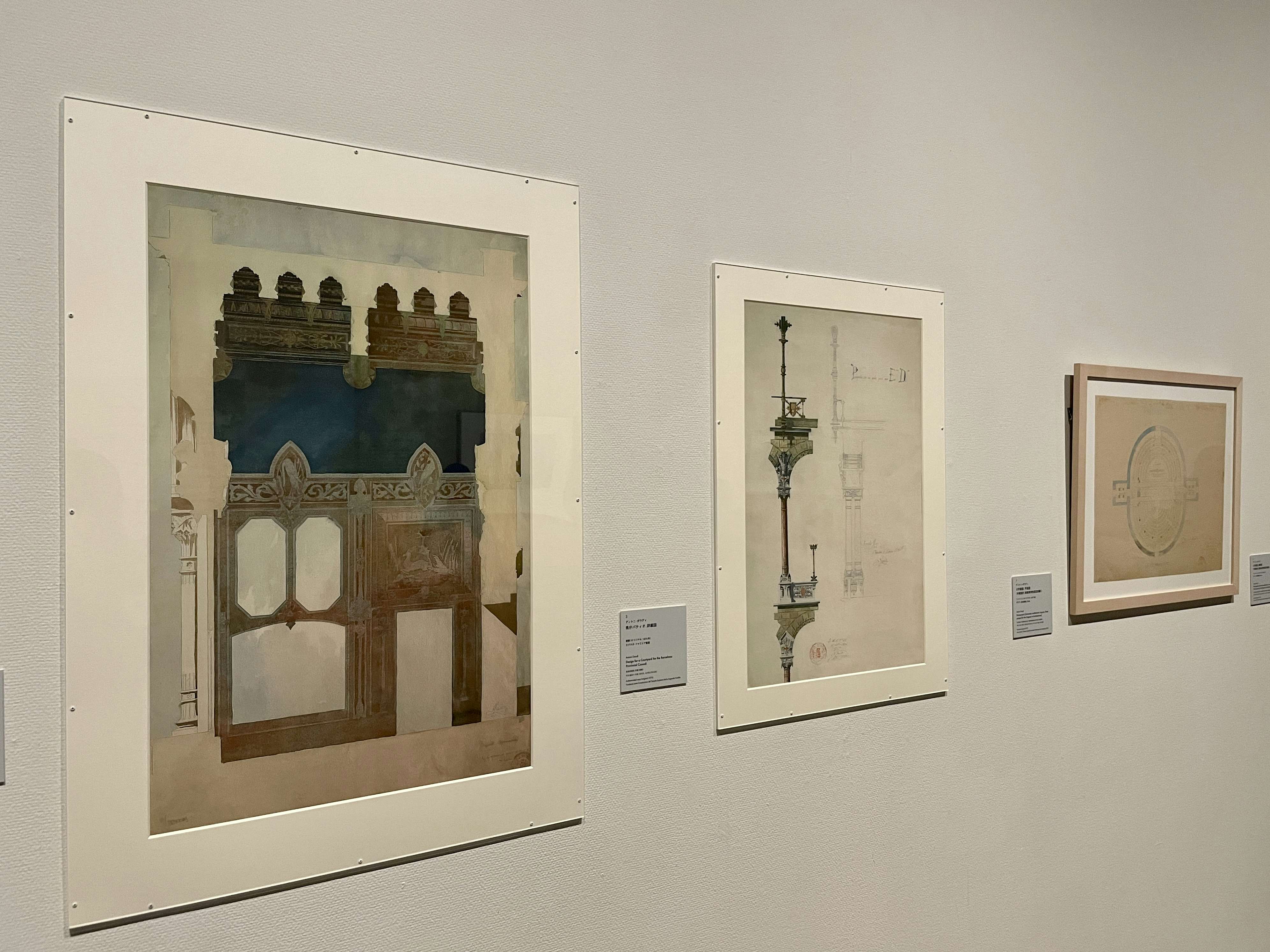 第1章の展示風景より、《クメーリャ革手袋店ショーケース、パリ万国博覧会のためのスケッチ》(1878)