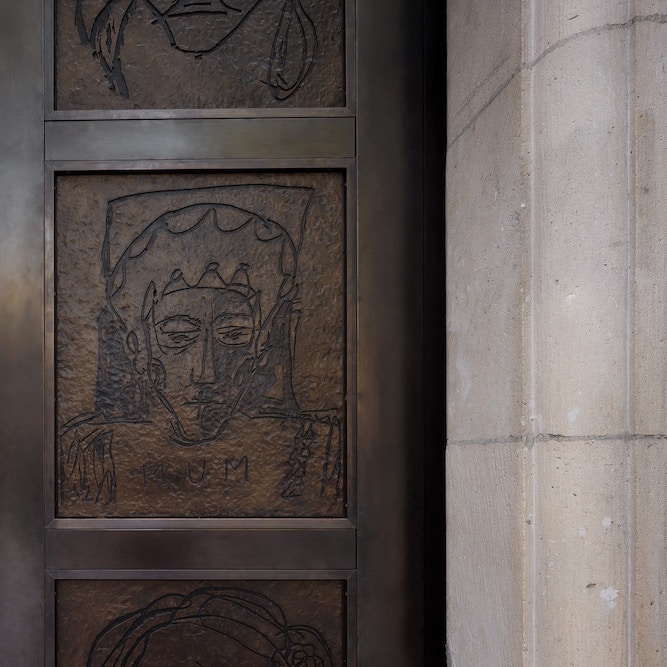 ギャラリーの顔ともいえるメインエントランスは、かつての東側の大通りセント・マーチンズ・プレイス沿いから北側に移動。ロス・プレイスという名の広場に面してゆったりとしたファザードを構え、3つの入り口にはトレーシー・エミンによる扉《ザ・ドアーズ》を設置した。エミンが描いた45人の女性たちの肖像をブロンズに鋳造したパネルがはめ込まれており、同ギャラリーの新しい時代の象徴となっている。