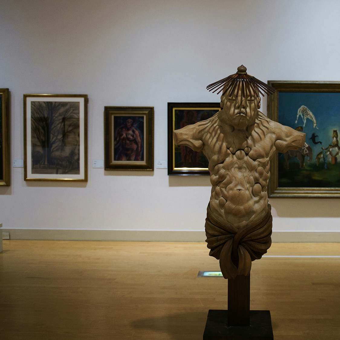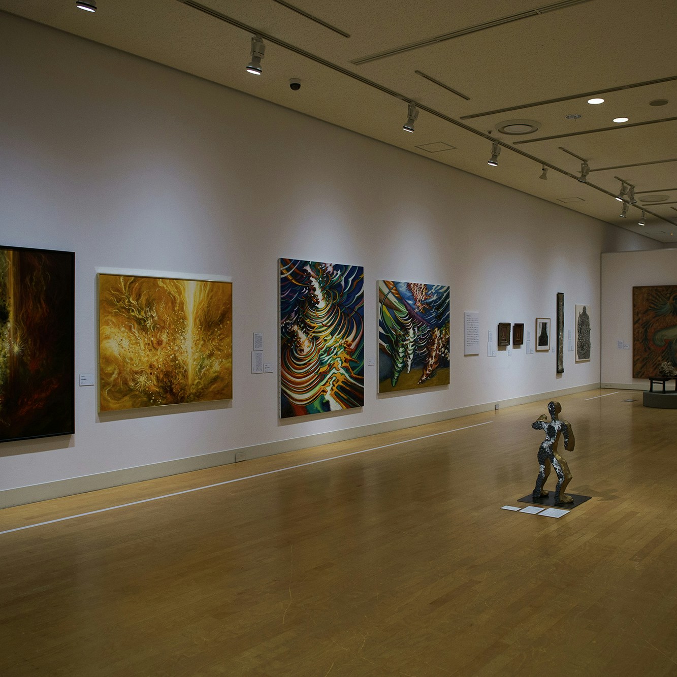 「人間を超越した『何か』」と表現者との関係性を軸に展開する、グループ展「顕神の夢—霊性の表現者 超越的なもののおとずれ」が足利市立美術館で開催中だ。放浪の仏師である円空から萬鉄五郎や村山槐多、宮沢賢治、草間彌生に横尾忠則に中園孔二まで、圧巻の見応えの展示は8月17日まで。