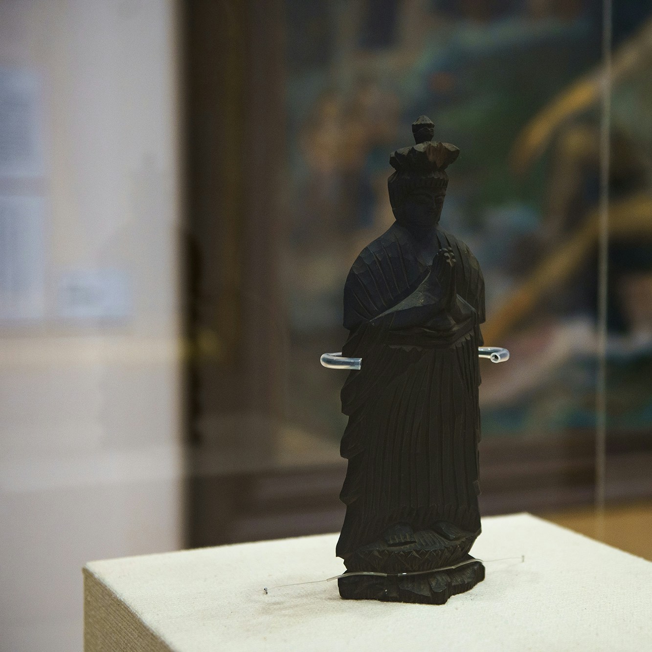 展示の章立ては緩くシームレスに続く。「神・仏・魔を描く」と題された章には、神仏の姿を感得し、形にした作家、仏師たちの作品が並び、そこには内面に反映された神や仏と同時に、得体の知れぬ「魔」の姿も現れている。自然信仰や神仏習合などの影響も受け、旅をしながら仏像を彫り続けた円空、台風で半倒壊した樹齢600年のご神木にスサノオを見出した三宅一樹といった作家による立体作品から、高島野十郎、藤井達吉、秦テルヲ、平野杏子、佐藤渓、若林奮などの平面作品が集められた。