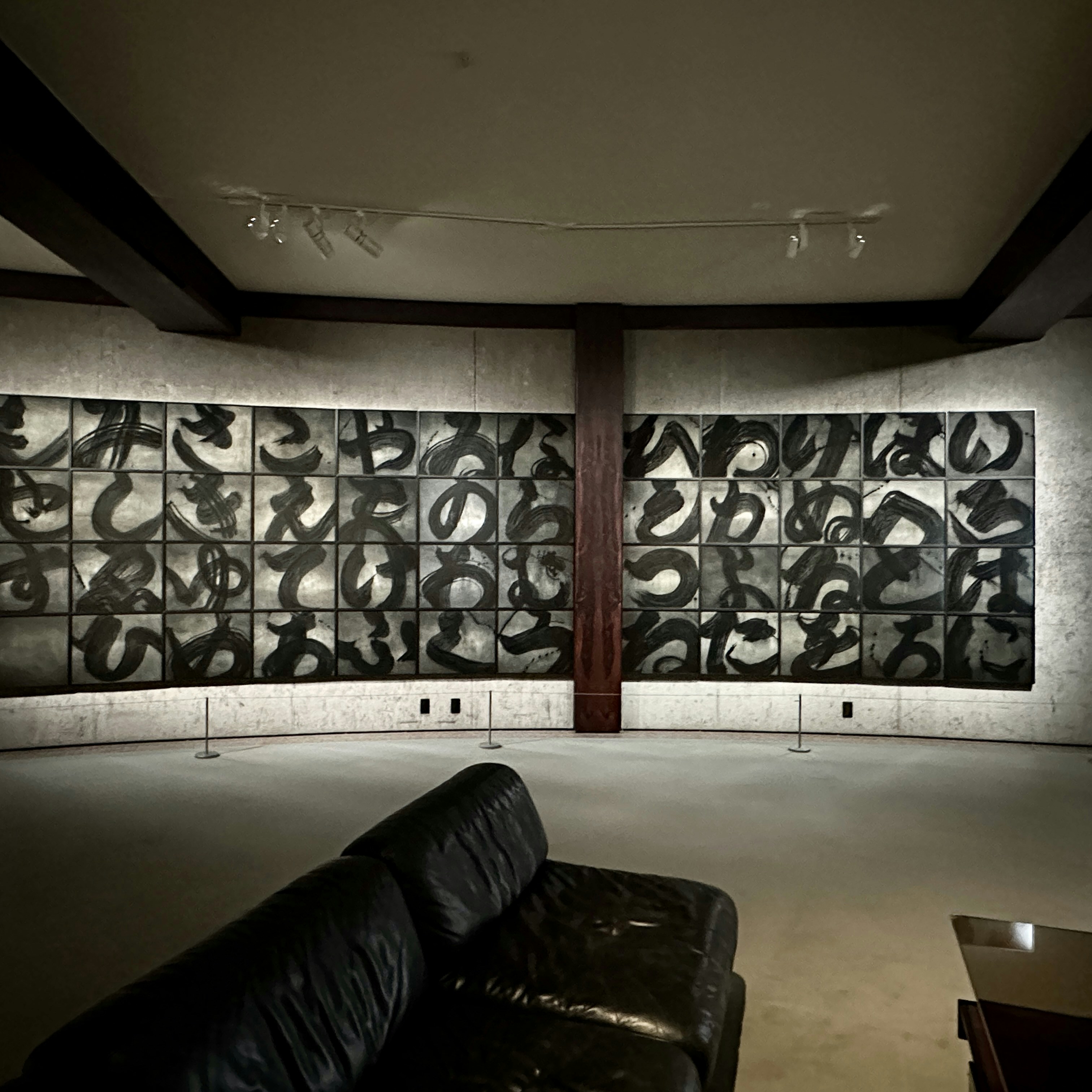 現像液を使用して描いたのは、「いろはにほへと」から始まる平仮名47文字の《いろは歌(四十七文字)》。杉本は「いろは歌」を「仏教の無常感を説いたものであり、日本文化の素晴らしさの象徴」だと語っており、いろは歌を書くことで自身の意識の源に立ちかえるとともに、反芻することを試みているという。なお、会期後半では「あいうえお」をモチーフにした《愛飢男(四十五文字)》に展示替えされる。