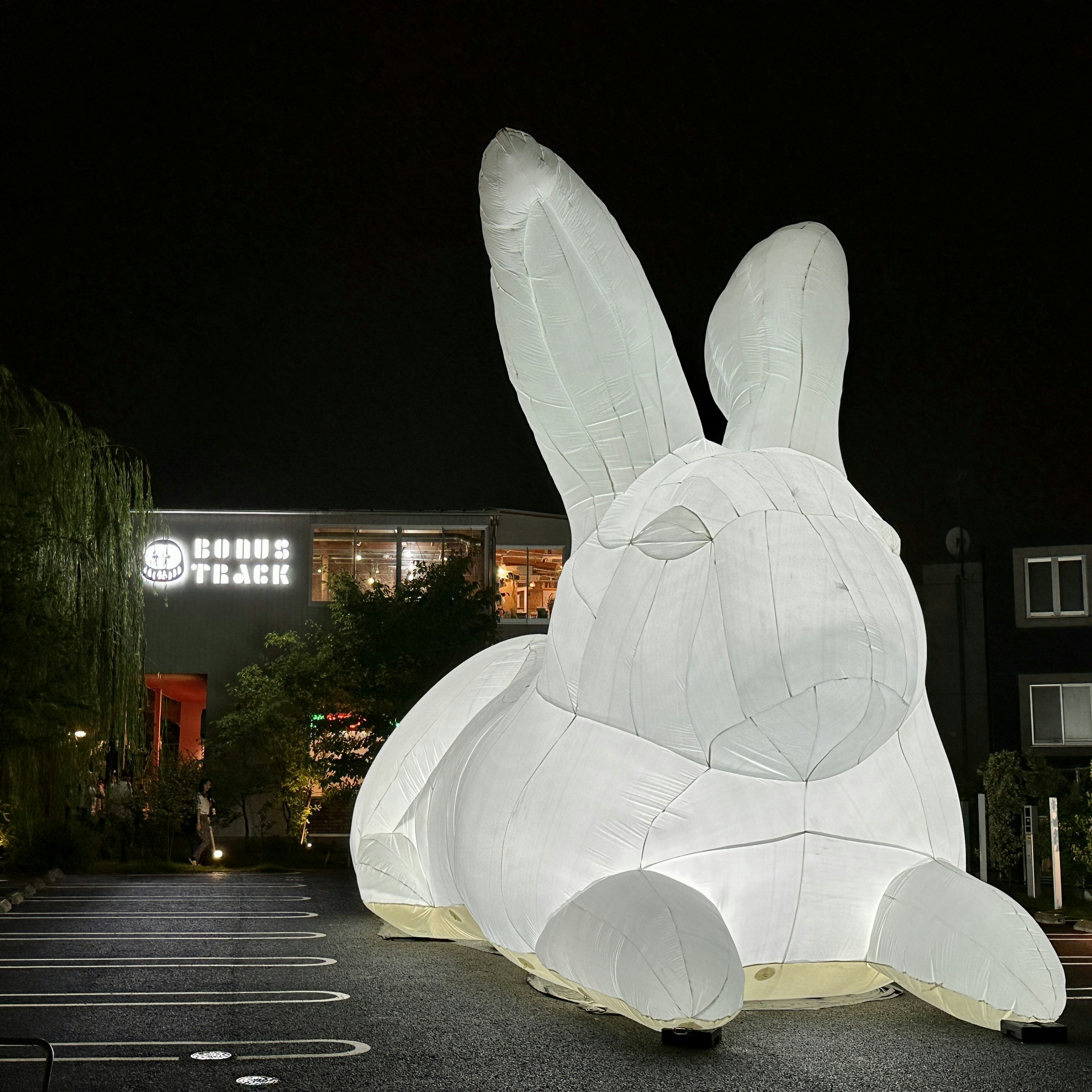 複合施設「BONUS TRACK」に隣接する駐車場に現れたのは、ウサギを模した全長14メートルの巨大作品。オーストラリアを拠点とするアーティスト、アマンダ・パーラーによる《Intrude》は、本イベントのシンボルだ。パーラーは同作の背景について、「オーストラリアでは白人の入植者によって持ち込まれた3匹のウサギが繁殖し、いまではコントロールできない数になっている」と説明。人々を惹きつけるための愛らしさを持つ反面、人間が環境に及ぼした影響や、環境破壊、サステナビリティについて考えるきっかけを提示するものだ。