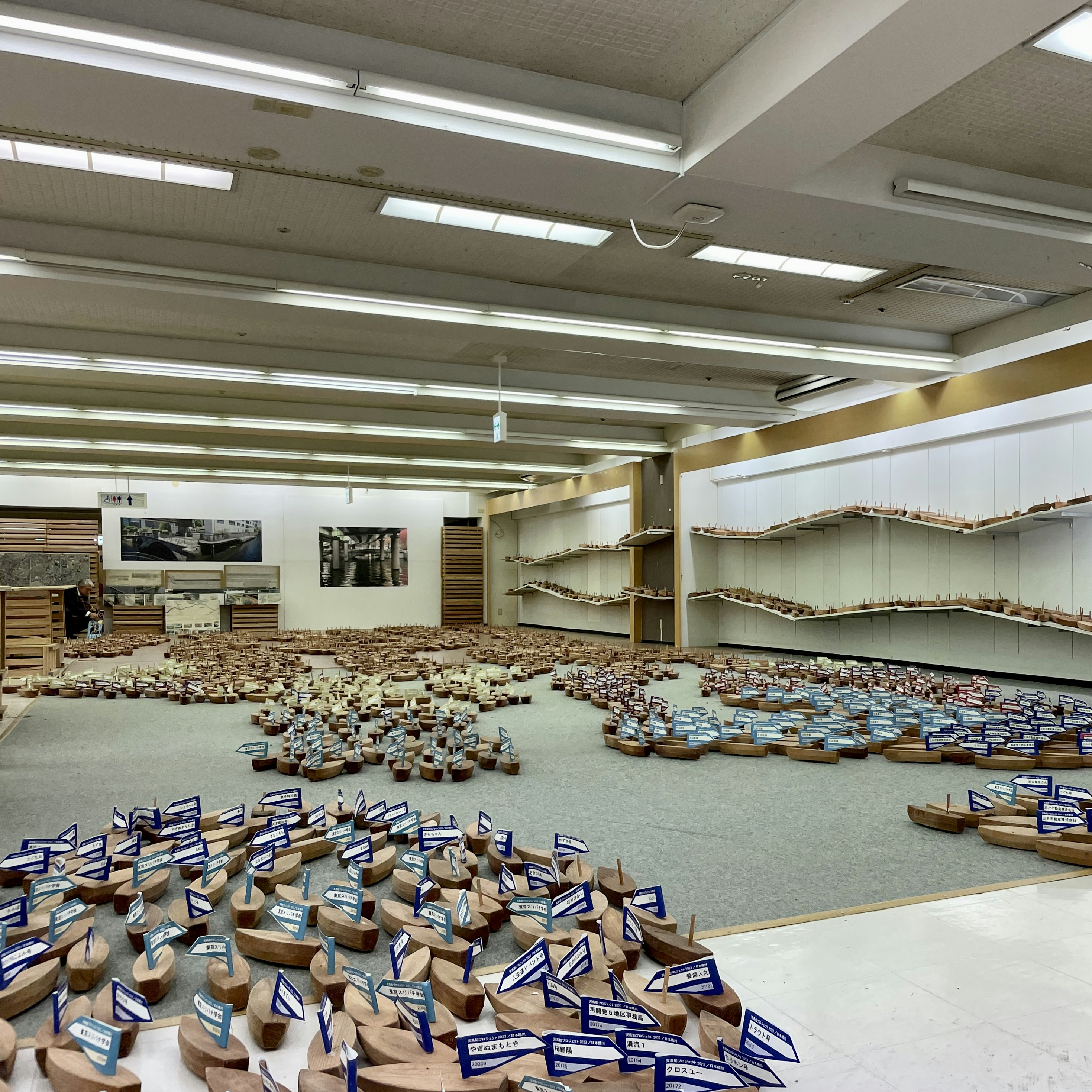 また、エトワール海渡のリビング館の2階ではコミュニティアートプロジェクト「天馬船プロジェクト2023/日本橋川」が紹介。木造のミニ天馬船を日本橋川に1万艘浮かべるこのプロジェクトは、参加者が1口1000円の寄付金でミニ天馬船のフラッグに自分の名前を登録することができる。10月29日には、これらのミニ天馬船を常磐橋から日本橋の区間で流すレースが行われ、またすべての寄付金は川辺の活性化や浄化活動のために使われるという。
