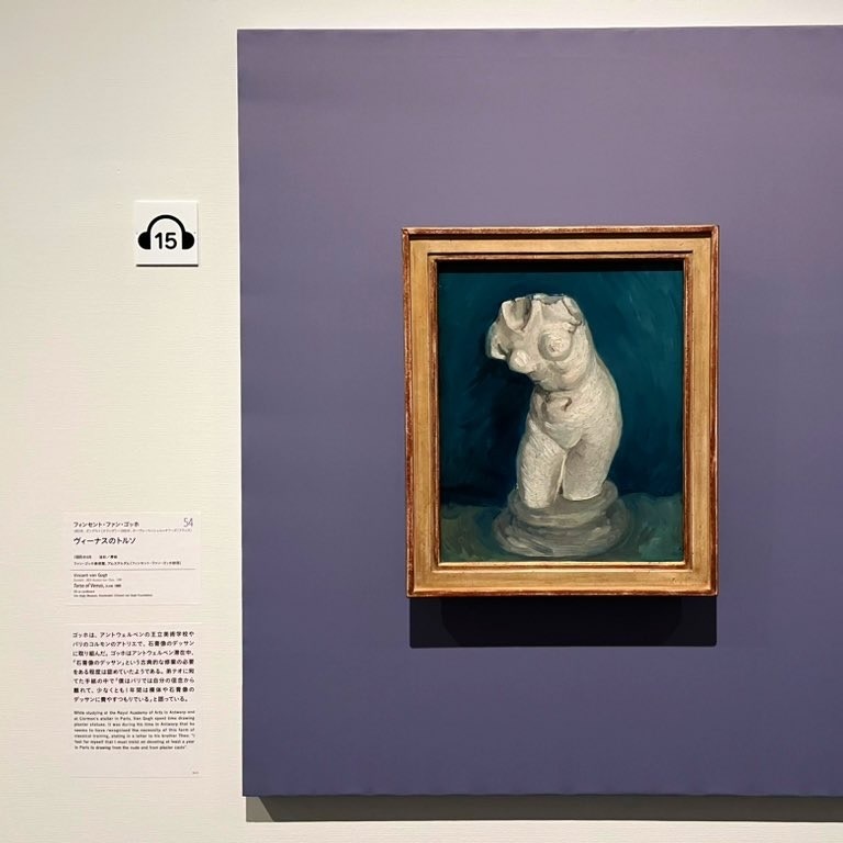 ゴッホの作品も興味深いものが多く、例えば茶系統の絵具のテクスチャによってくたびれた靴に強い存在感を与えた《靴》(1886)や、太い輪郭線と大胆な筆使いがただ修練のために描いた石膏像とは一線を隠す《石膏トルソ(女)》(1887〜88)などは、高い強度を持っている。