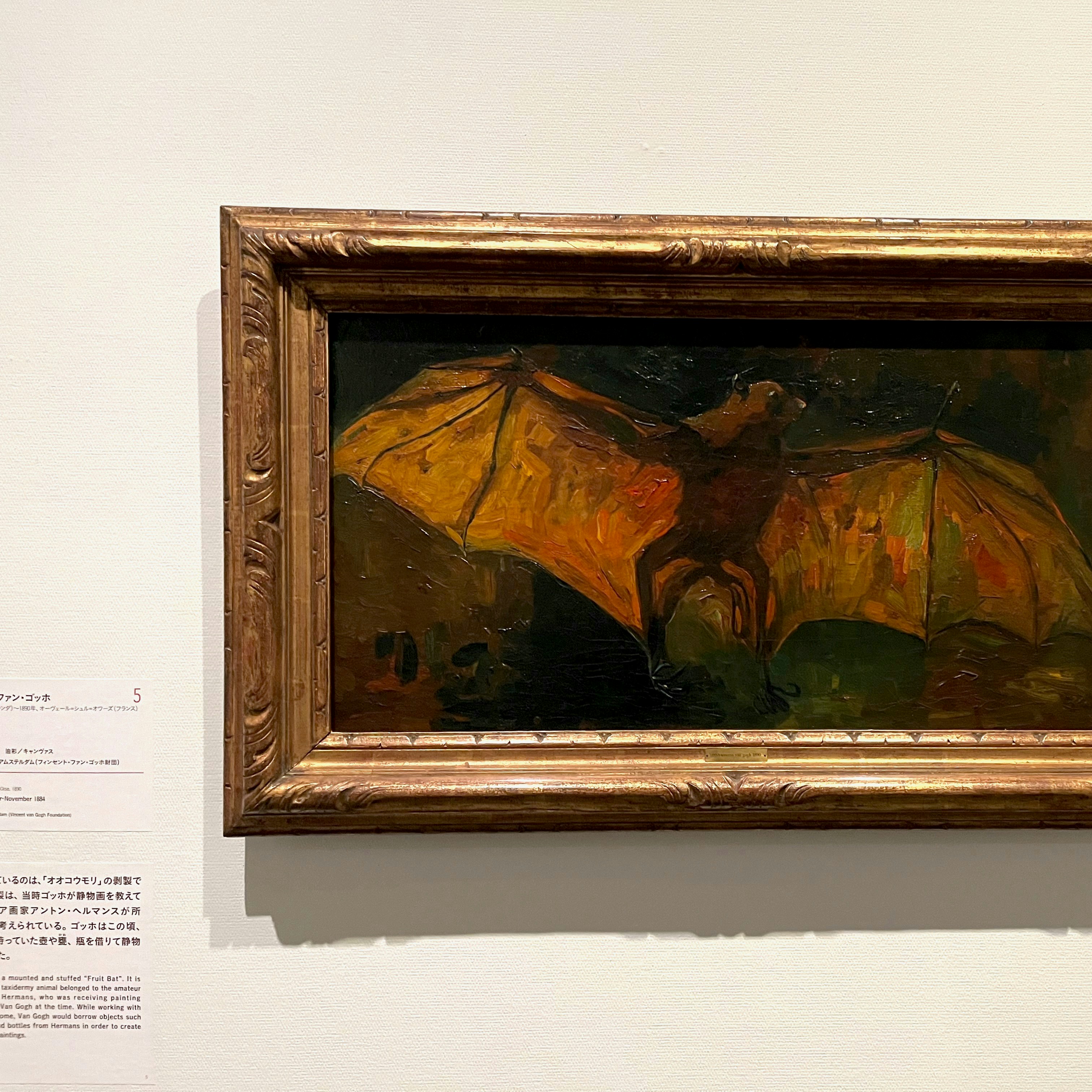 本章の展示作品を見ると、ゴッホが様々なモチーフを描いていたことがよくわかる。3点が確認されているドクロを描いた絵画のなかのひとつ《髑髏》(1887)のほか、《コウモリ》(1884)、《燻製ニシン》(1886)、《鳥の巣》(1885)、《野菜と果物のある静物》(1884)など、自身の画力を上げるためにゴッホが貪欲に幅広いモチーフを描こうとした結果生み出された作品が並ぶ。