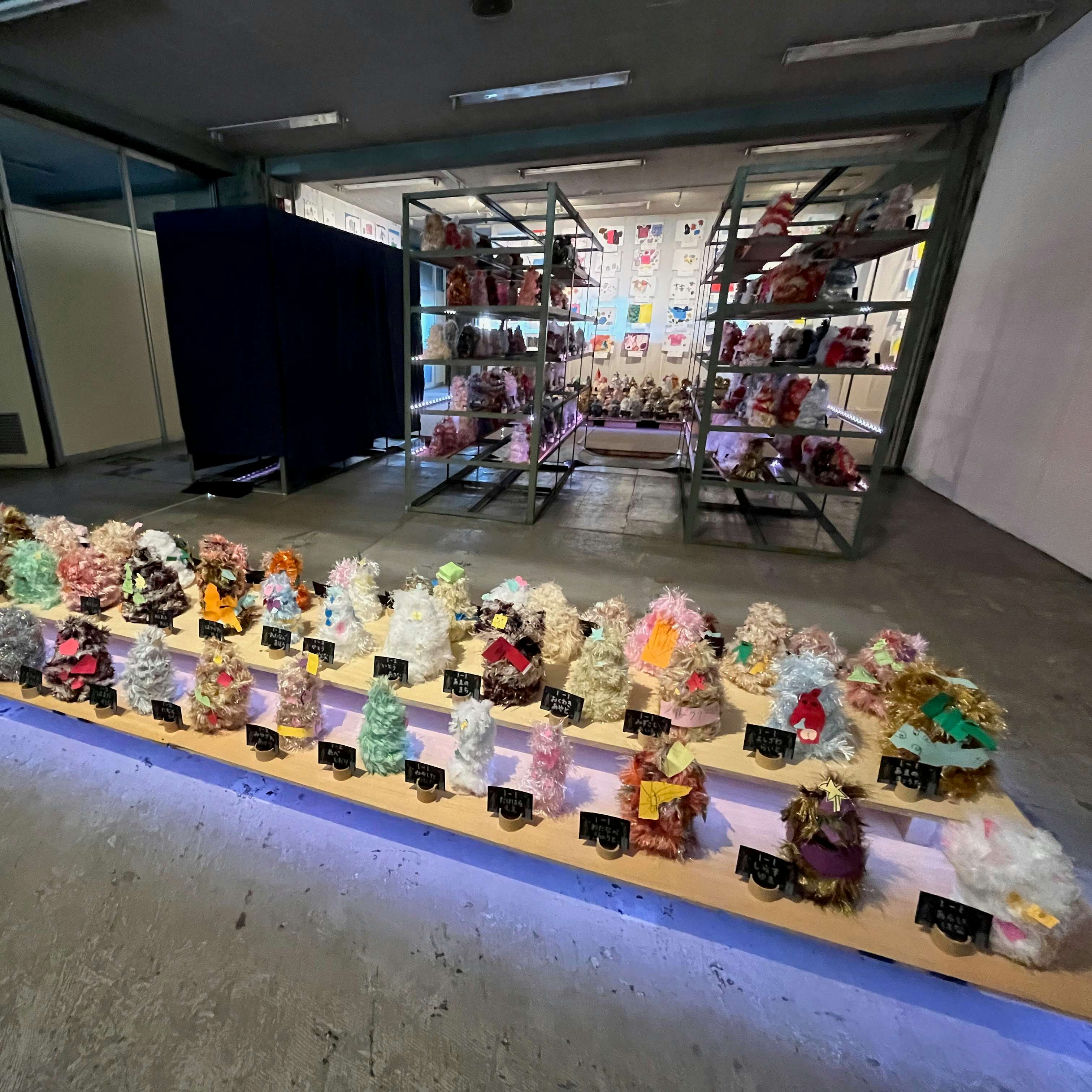 加えて、会場では市内の保育園の園児たちがつくった作品も展示。市の子供たちが、布をテーマに制作した絵画や、布の廃材である捨て耳をつかい制作したクリスマスツリーが並ぶ。富士吉田が機織りの街であるという実感が、産業構造の変化によって薄れつつあるなか、子供たちに改めて街の個性を認知してもらう取り組みでもある。