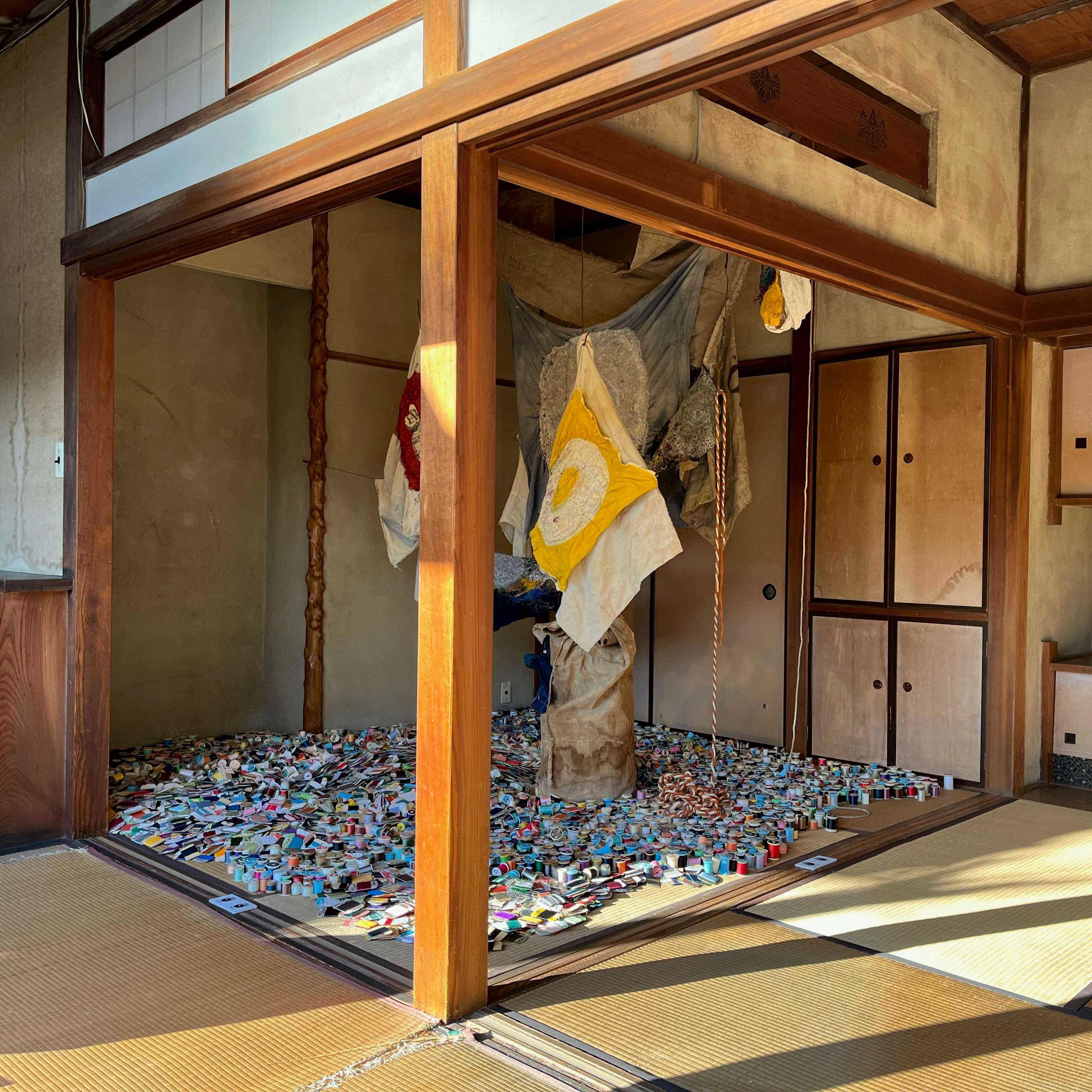 今年から会場に加わったのが、かつての織機の工場跡地である「旧山叶(やまかの)」。この地上約9メートル、幅約20メートルの広大なスペースでは、ネリー・アガシ、池田杏莉、スタジオ ゲオメトル、顧剣亨、ジャファ・ラムの5名の作品が展示されている。