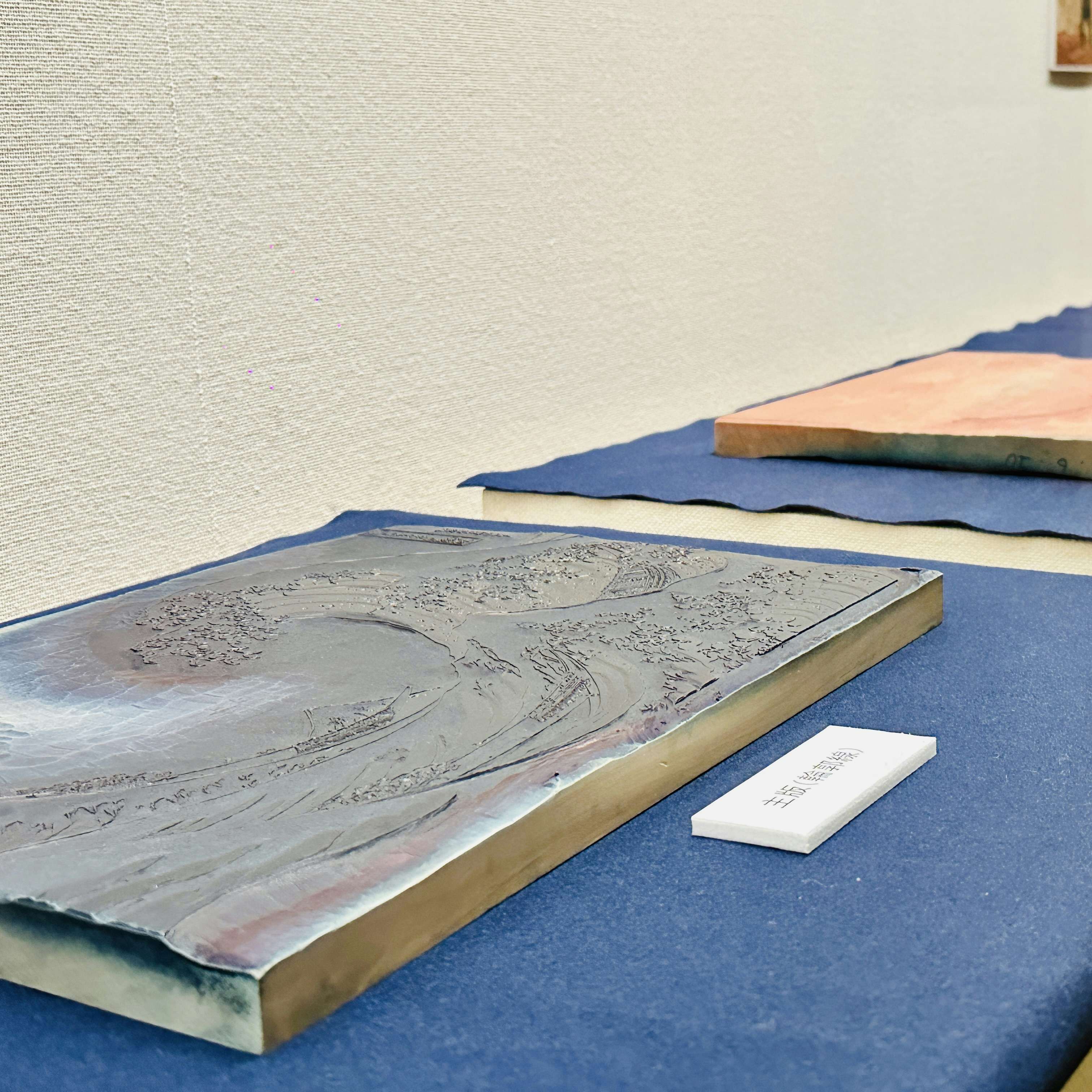 《冨嶽三十六景 神奈川沖浪裏》は8つの色を摺り重ねることで完成するが、現在その版木は残っていない。ここでは、アダチ版画研究所の現代の職人が手彫りした版木を展示することで、その制作過程がより深く理解できるようになっている。浮世絵では1つの色に1枚の版木を使うのが基本だが、同作では離れた色は1枚の板木にまとめるなと、最低限の版木で済むような工夫がなされているという。