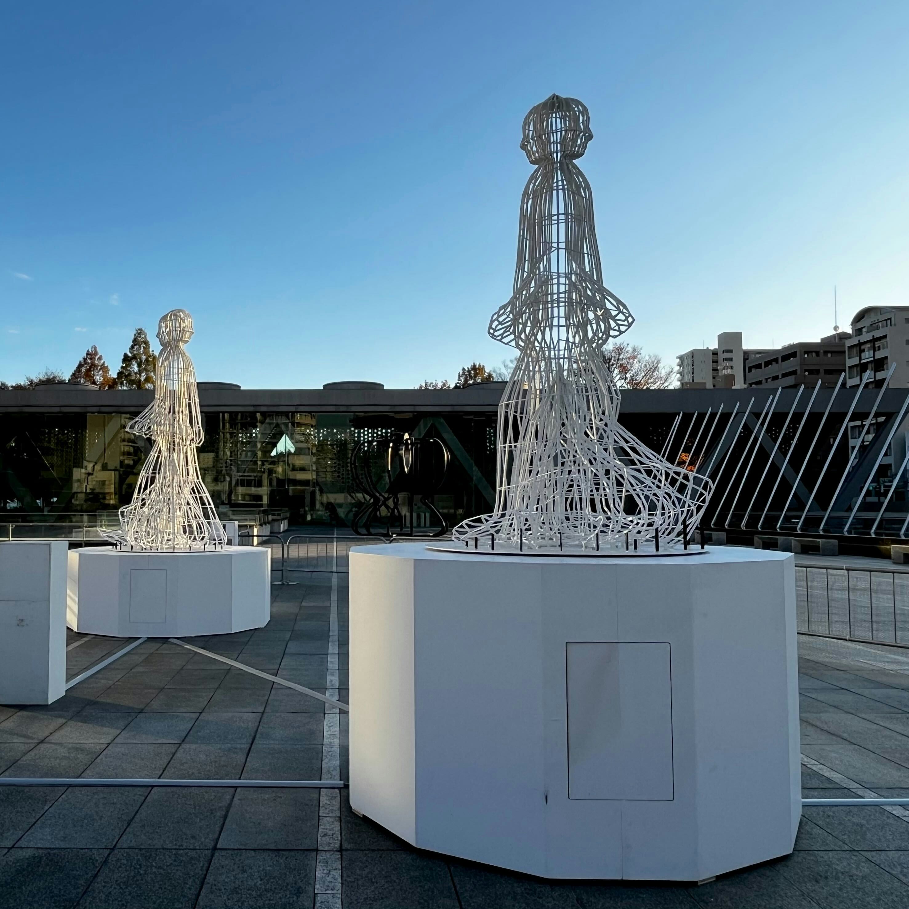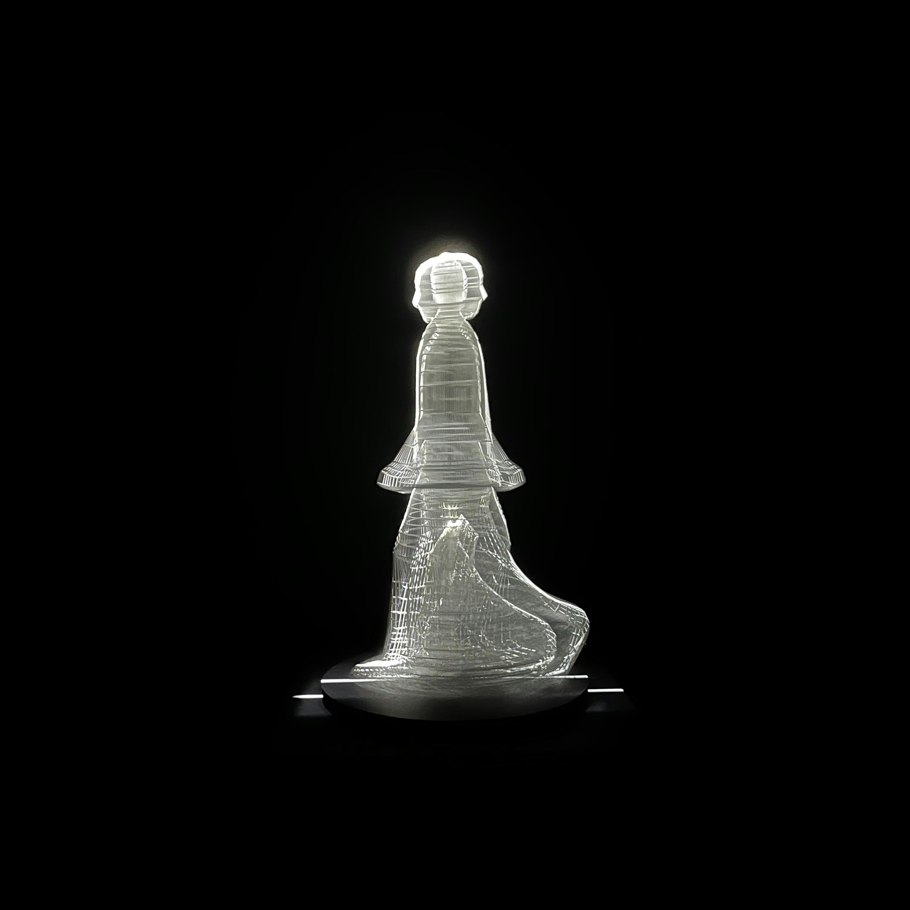原初的な映像メディアと現代のテクノロジーを行き来しながら、動きや時間といった目に見えない事象とデジタルの関係性に着目した作品を発表する後藤映則(1984〜)は、会場に4点の作品を展示。3Dプリンターと光によって生み出される人型オブジェの滑らかな動きは、フィジカルとデジタルのあいだを縦横無尽に行き来しているようでもある。屋外には大型彫刻も設置されており、昼夜で変わる見え方にも注目したい。