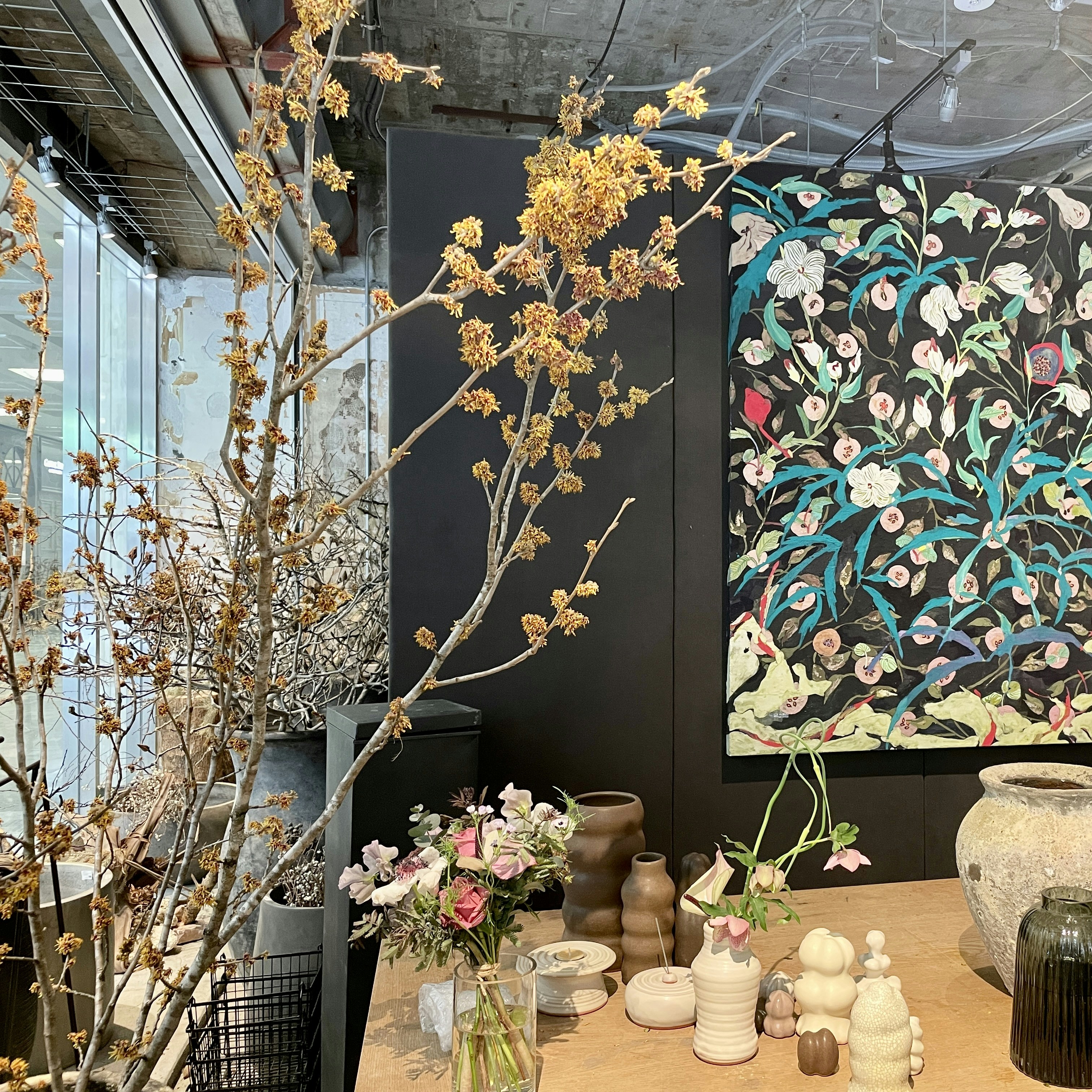 植物画を主な題材とし、植物にまつわるエピソードや土地に長く伝わる知恵や知識にも着目し、現代的な問題意識を内包した作品を発表する浅野友理子はフラワーショップ・bois de guiで、韓国から宮城に嫁いできたという女性に教えてもらったツルニンジンや、自宅の庭に祖母が植えたホトトギスを描いた作品を展示。様々な土地での記憶を感じとることができる。