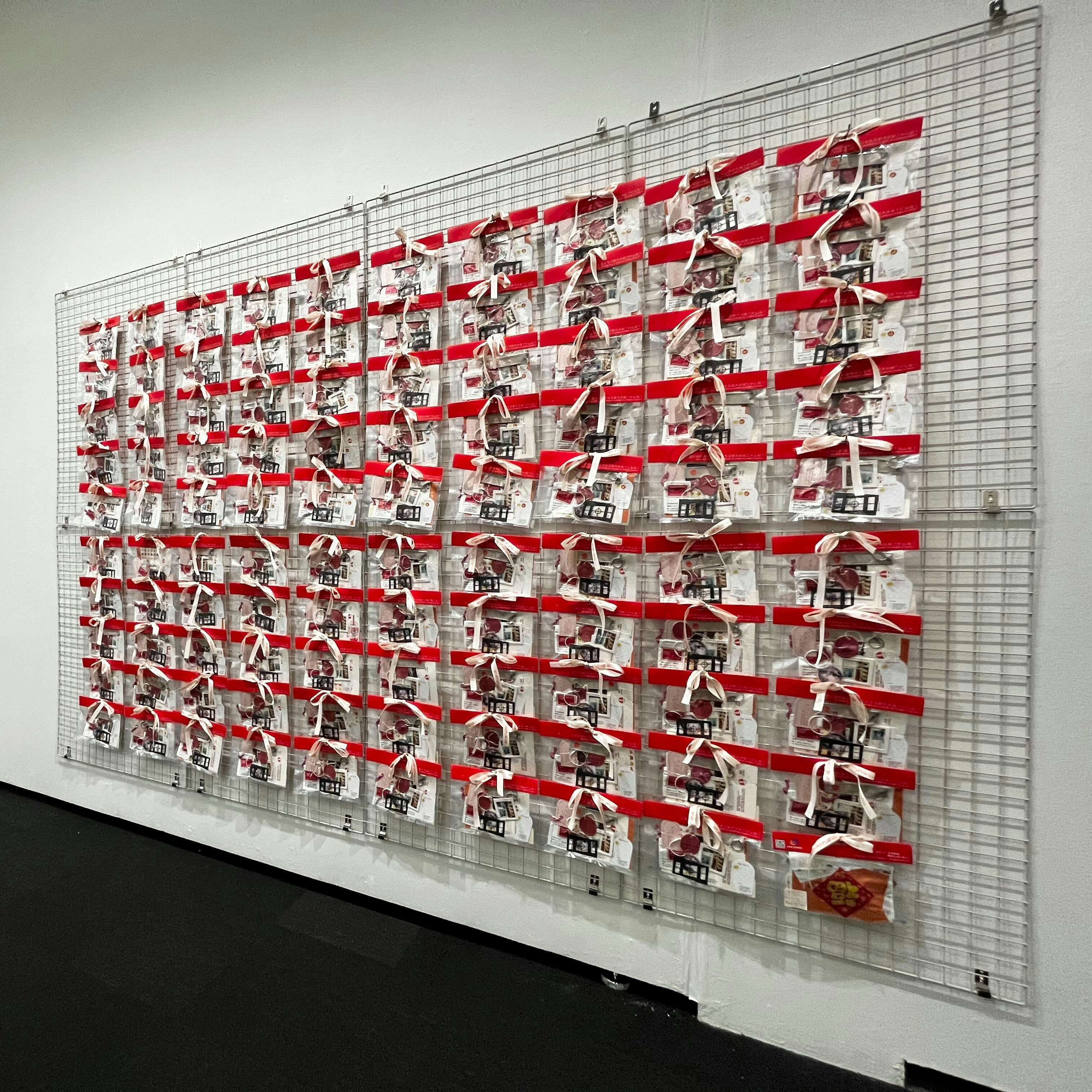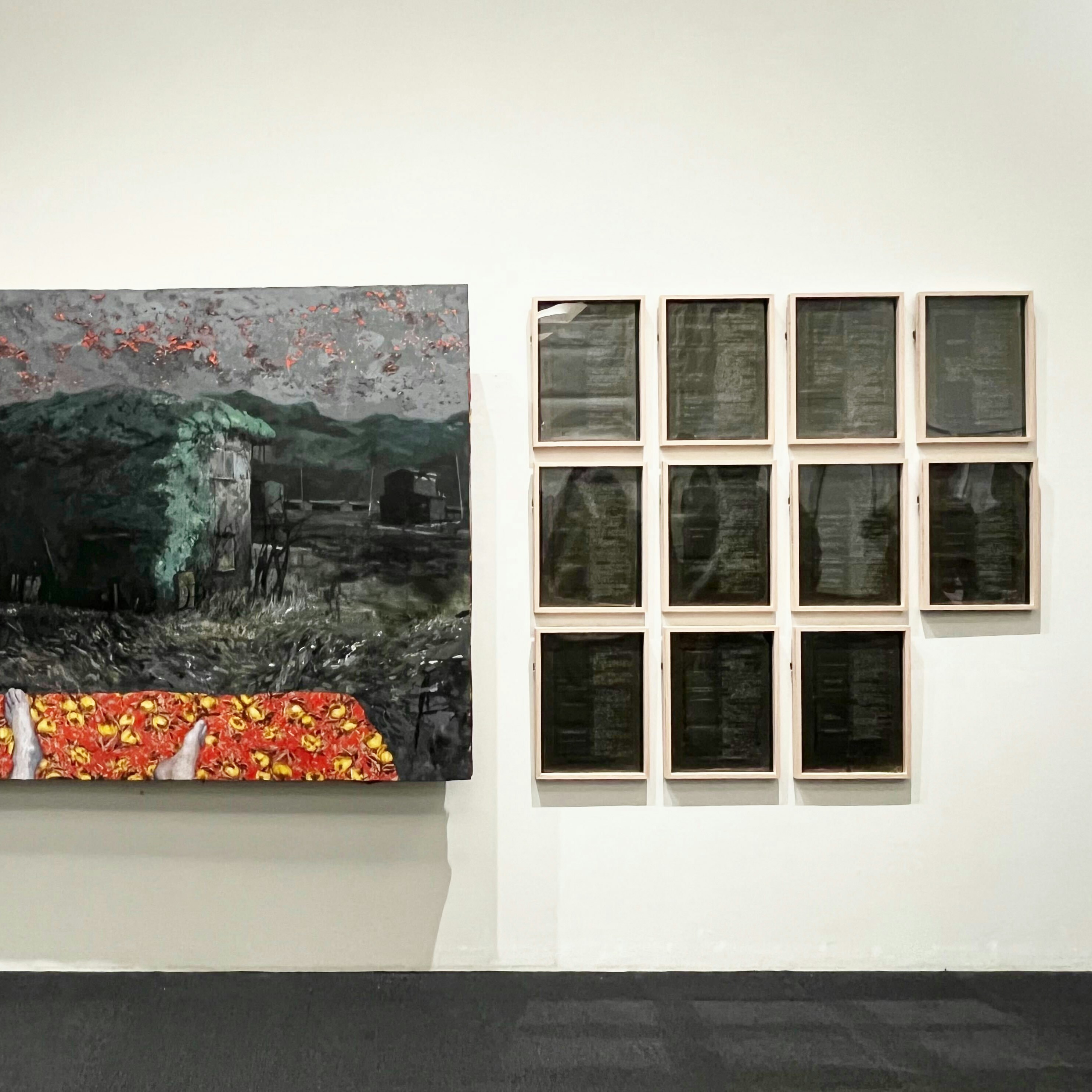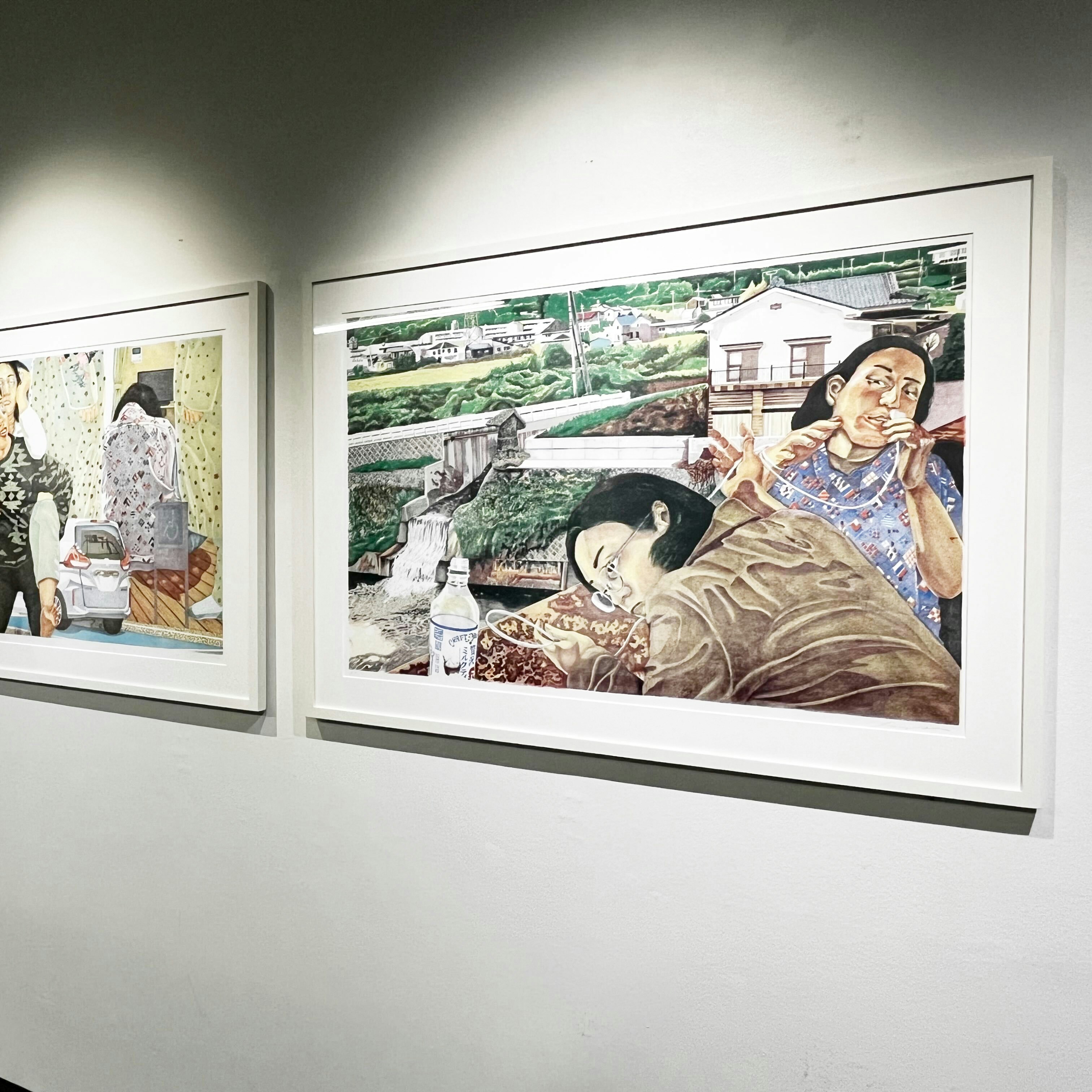 ほかにも、法廷画家として様々な事件に立ち会いながらも、その報道をひとりの視聴者として受け取り、実際に現場を訪れ、自身の関心とともにイメージをつくりあげる松元悠によるシリーズ作品や、柔らかな色調の幾何学的な抽象画のなかに人間の営みを描き、自他の境界線やその距離感について観測者の視点で描く東山詩織の作品。中国滞在時に大量生産・大量消費を陰ながら担う低賃金労働者への不平等な現実に着目し、彼らにメッセージを伝えるために商品発注を試みたウチダリナによる、そのやり取りを作品化したインスタレーションなど、平面の概念を超えた多彩な作品が見どころとなっている。