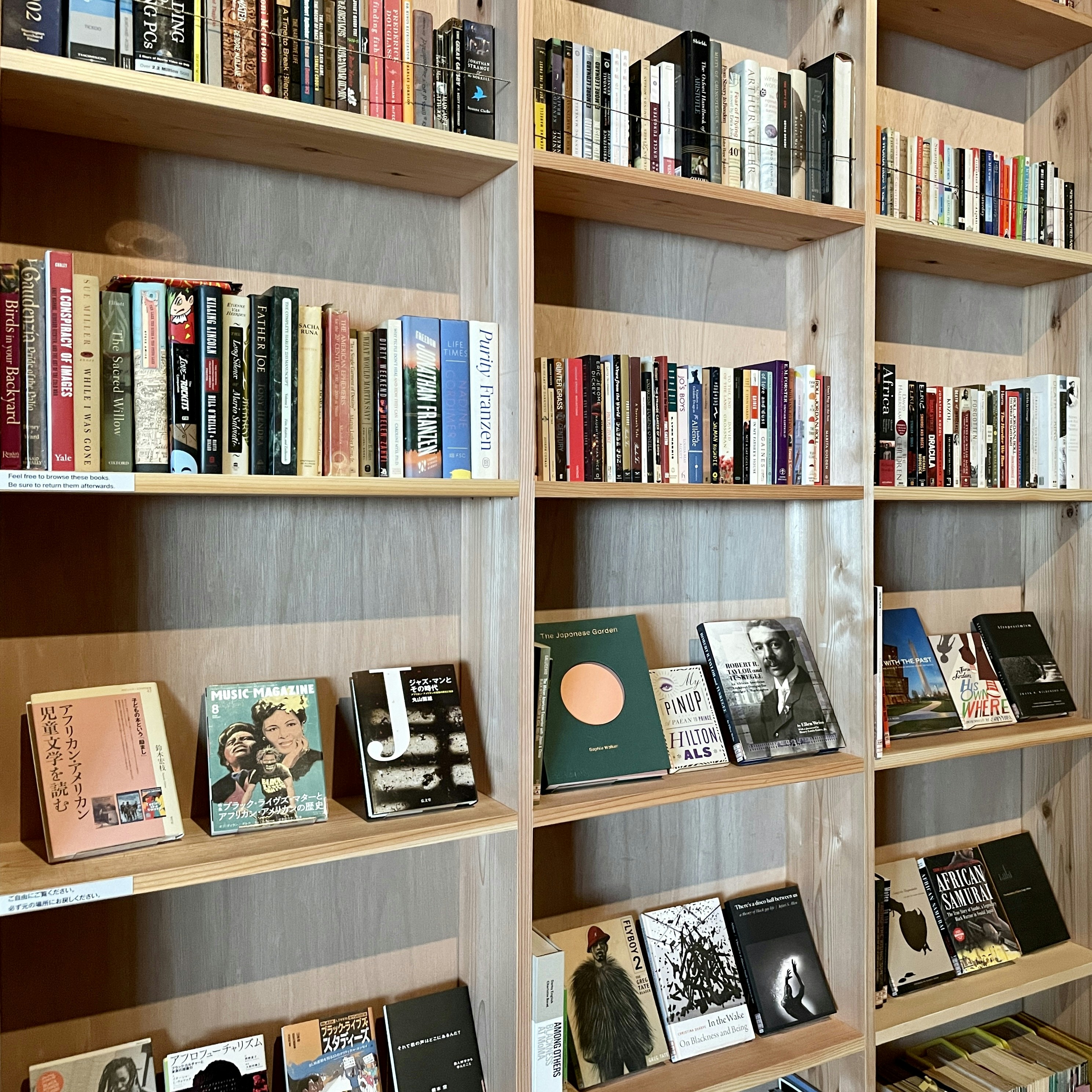 「黒人の文化的空間」をテーマに様々な建築プロジェクトを手がけ、その過程において関連する品々を過去15年間にわたって蒐集し、保存し、管理してきたゲイツ。第2章「ブラック・ライブラリー&ブラック・スペース」では、ゲイツがそうした「創造的な作業」のなかでつくり出したアーカイヴの一部を図書館のかたちで再現している。会場では、シカゴから運ばれてきた約2万冊の書籍が、日本語の黒人史にまつわる書籍とともに展示されており、そのほとんどは手にとって自由に閲覧することが可能になっている。