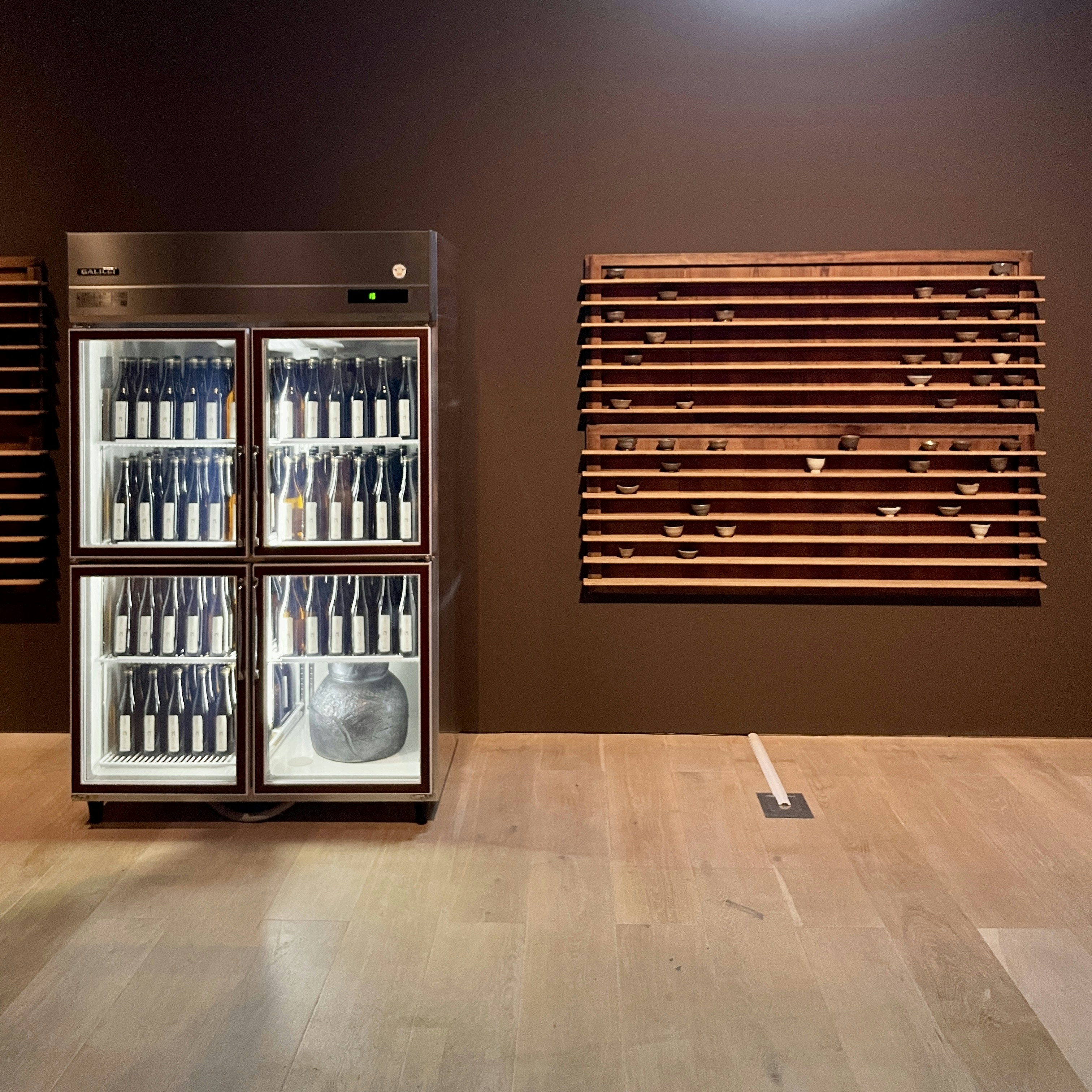 《みんなで酒を飲もう》(2024)は、明治から昭和初期まで酒屋で少量買いをする客への貸し容器として使われていた、「貧乏徳利」と呼ばれる陶器1000本を用いたインスタレーション。ゲイツが陶芸家・谷官とコラボレーションした同作では、谷の祖父が長年をかけて蒐集していた貧乏徳利を使っており、それぞれの容器にはゲイツのプロジェクト名である「門インダストリー」(ゲイツの名前は英語で門=gateの意もある)のロゴが印字されている。