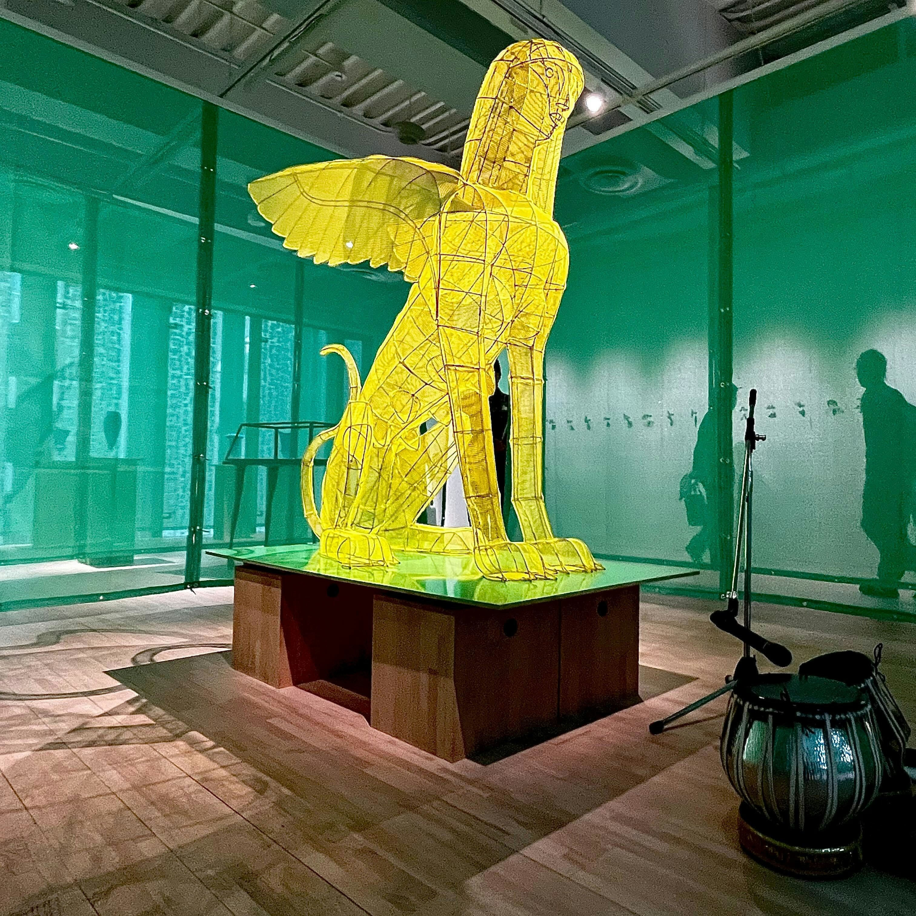 プラスチックネットで囲われた中央内側にはその新作《鉄骨のゴッデス》が鎮座するほか、セメントを流し込んでつくられたというアミュレットシリーズなど約60点が展示されている。銀座という都会のビルの一角で、現代に新たに語られようとする神話の断片に出会うことができるだろう。
