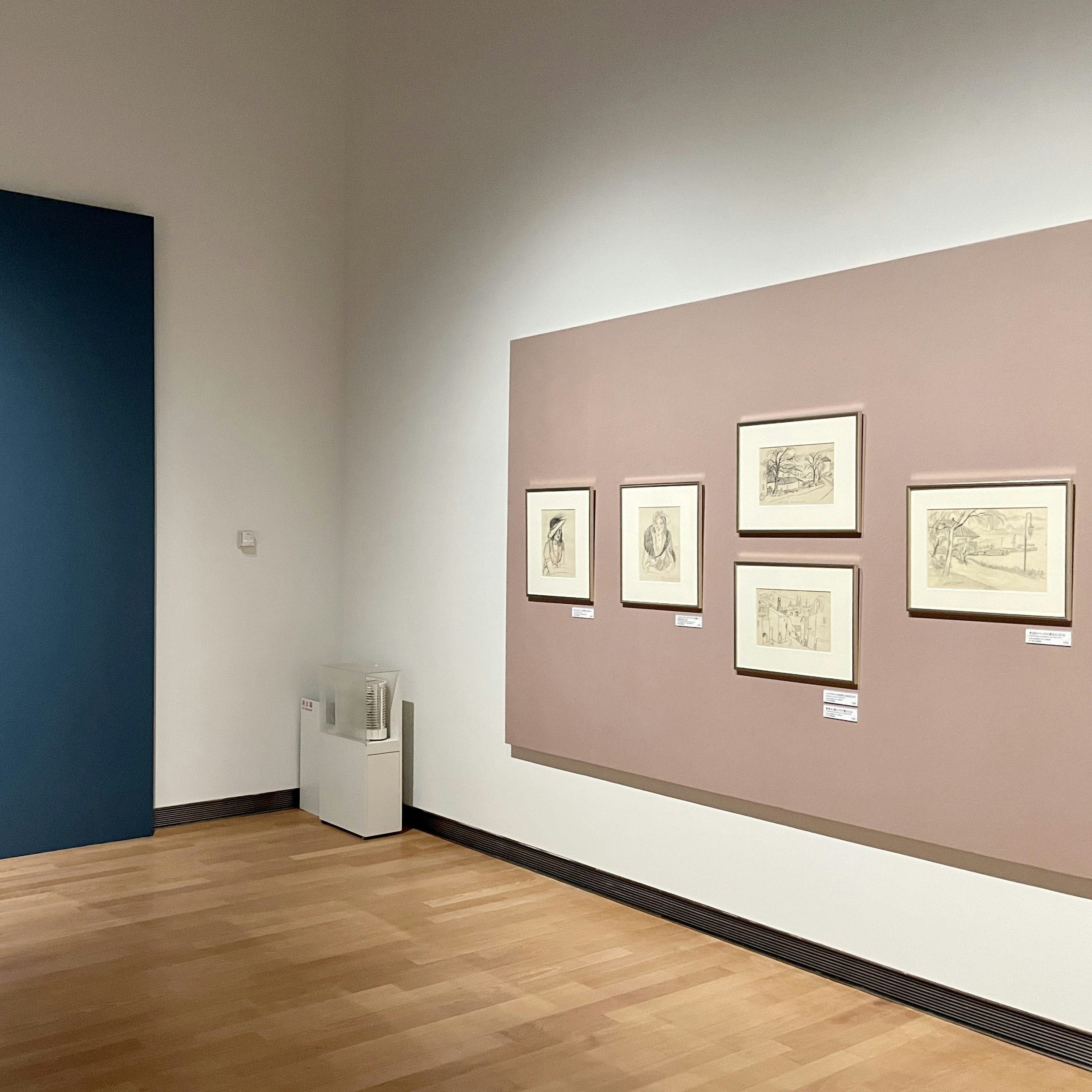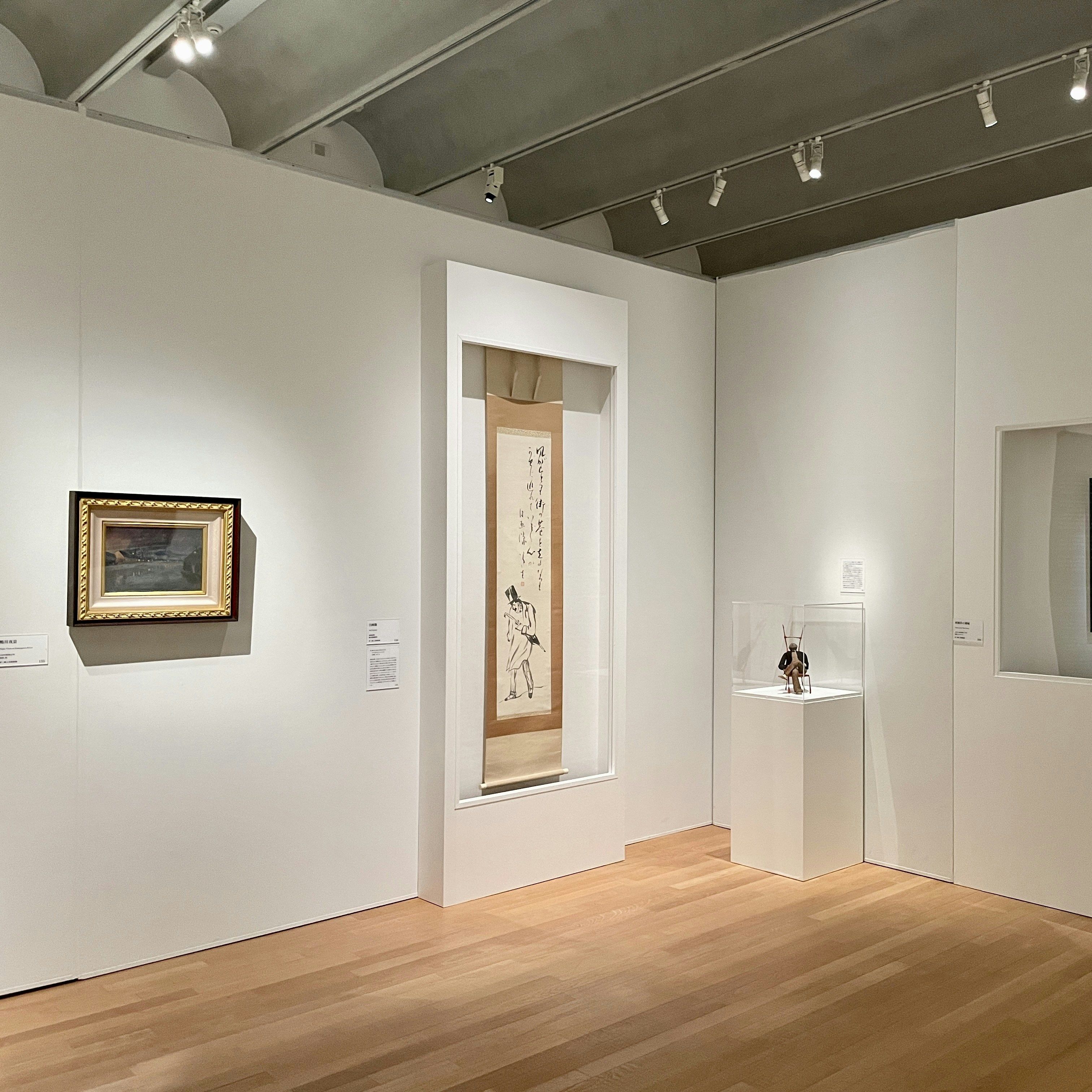 例えば、東京都庭園美術館 本館2階では、現存する夢二の最初期の油彩画作品《初恋》(1912)などが展示されている。同作は、1912年に京都府立図書館で開催された「第一回夢二作品展覧会」で、夢二が初めて公開した油彩画。夢二の油彩画は約30点しか現存しておらず、この作品を含めて夢二郷土美術館ではそのうちの13点を所蔵している(本展の展示作品187点のうちの186点が同館コレクション)。
