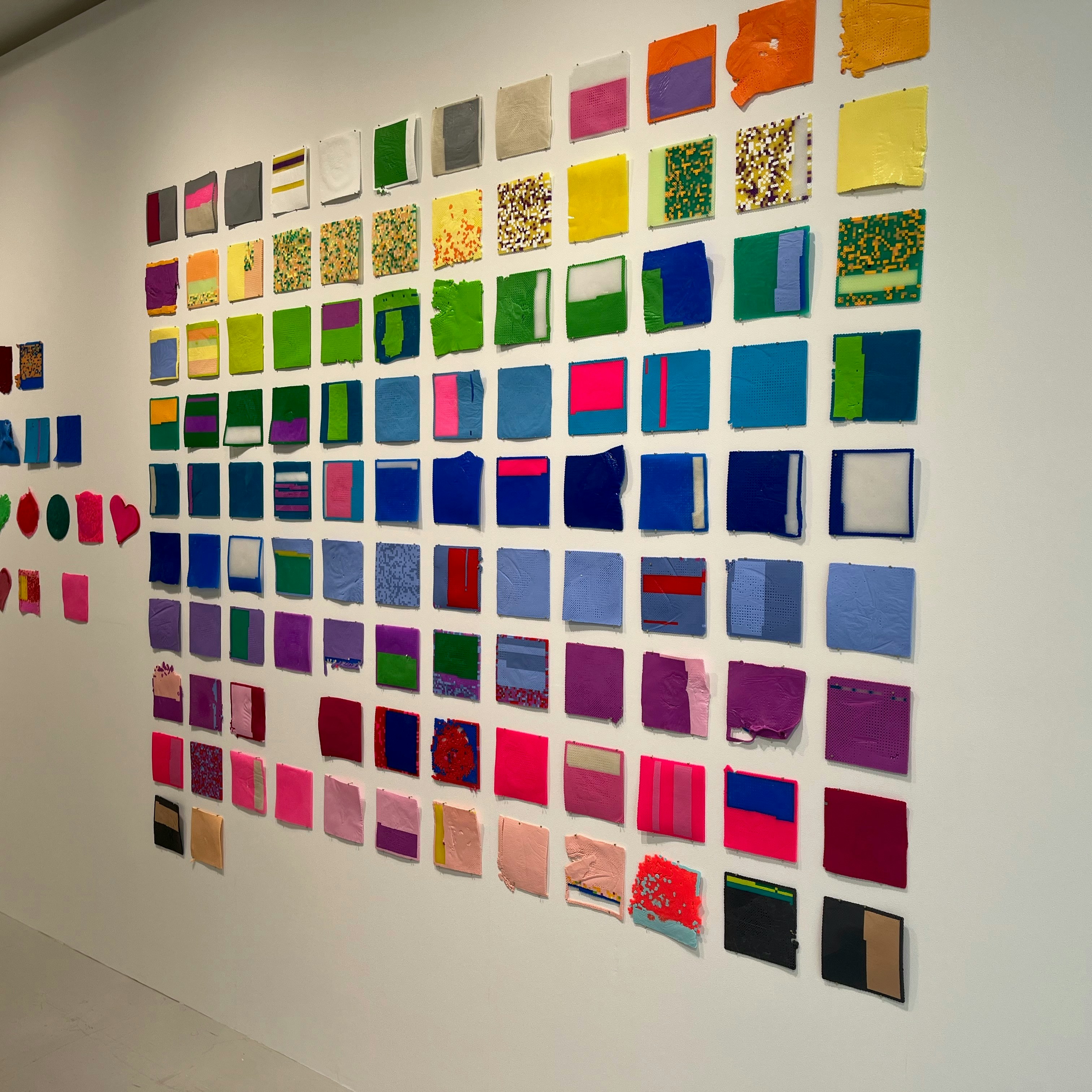 土谷は日々アイロンビーズを使った作品を1日に数個ずつつくり続けている作家だ。日々生み出されるそれらの作品の色や構成は、すべて作家のそのときその瞬間の感覚で決まっているという。展示されている作品はどれも異なる表情をもっており、繰り返しに見える日々のなかにある、気分や思いの変化が見えてくるようだ。