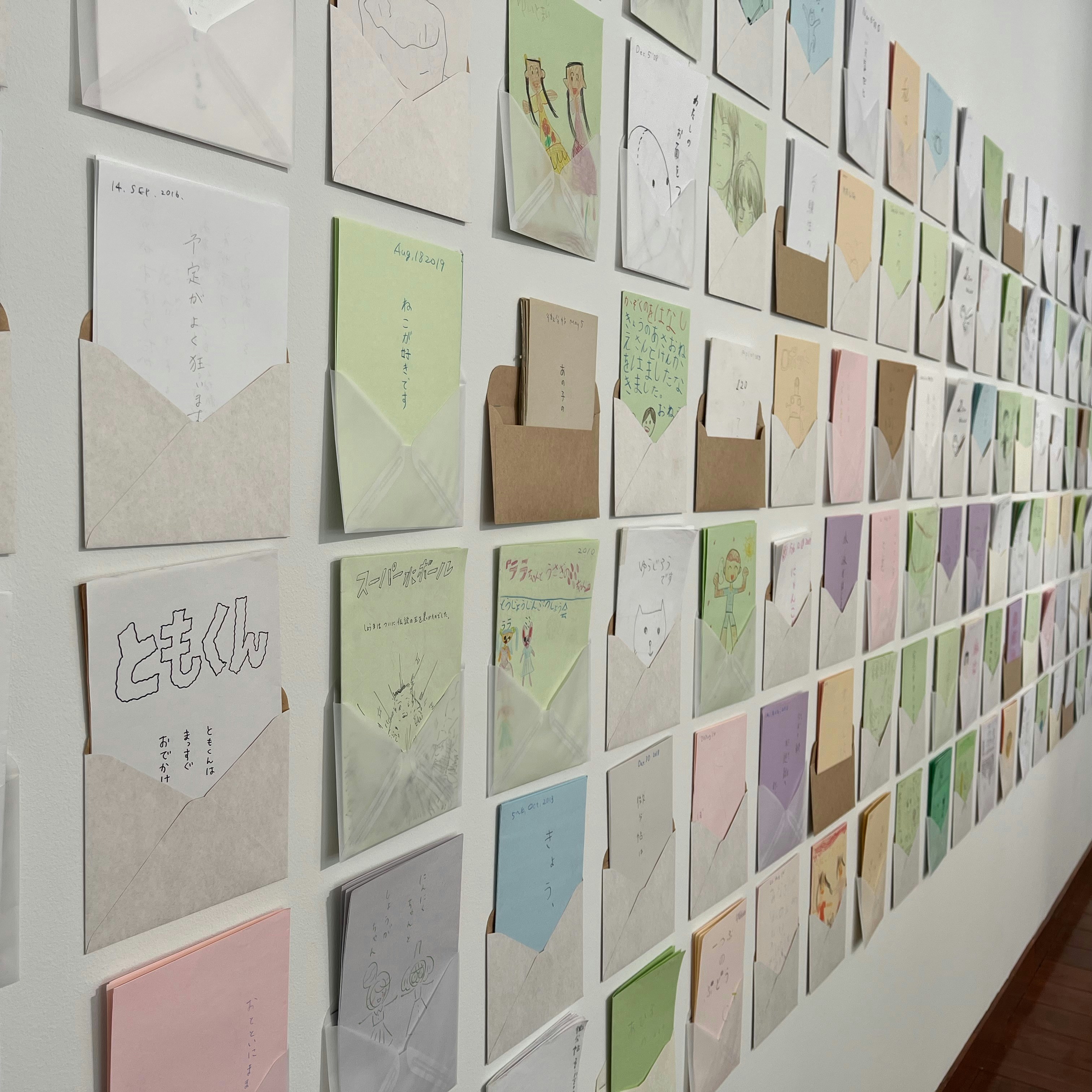 本展ではこれまで宮田が共同制作してきた「微分帖」を読むことができるほか、来場者もこの「微分帖」を見知らぬ誰かととともに共作することができる。また、この展示空間には、日常で耳にした言葉やテレビの音声などを筆で日々書き連ねていた関口の作品も展示。言葉によって切り取った日々の瞬間を垣間見ることができる。
