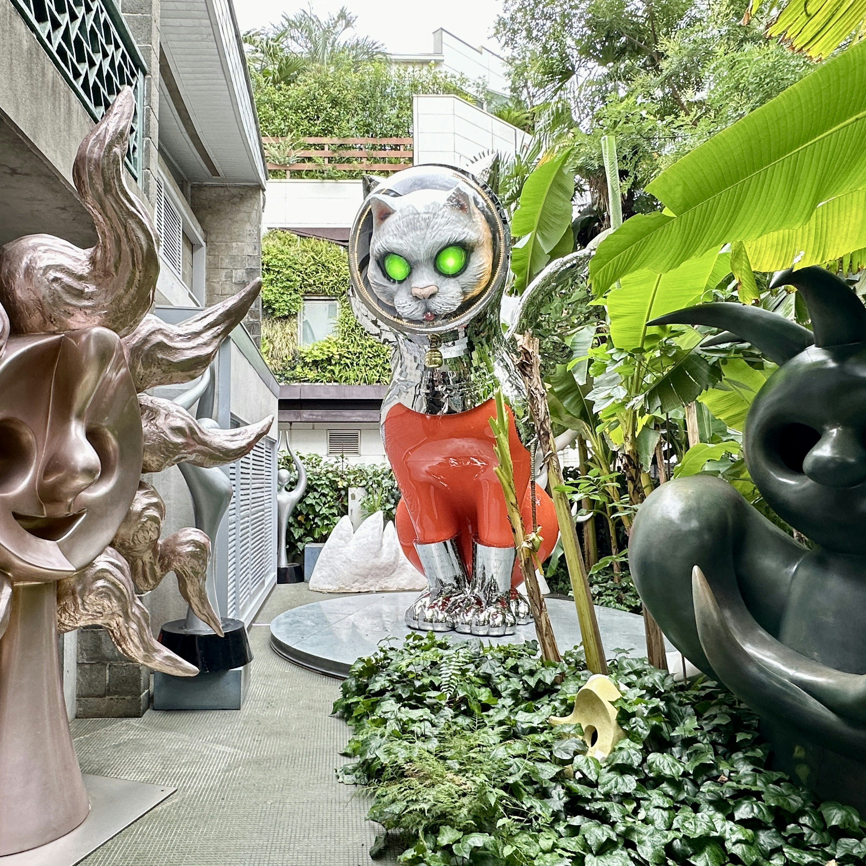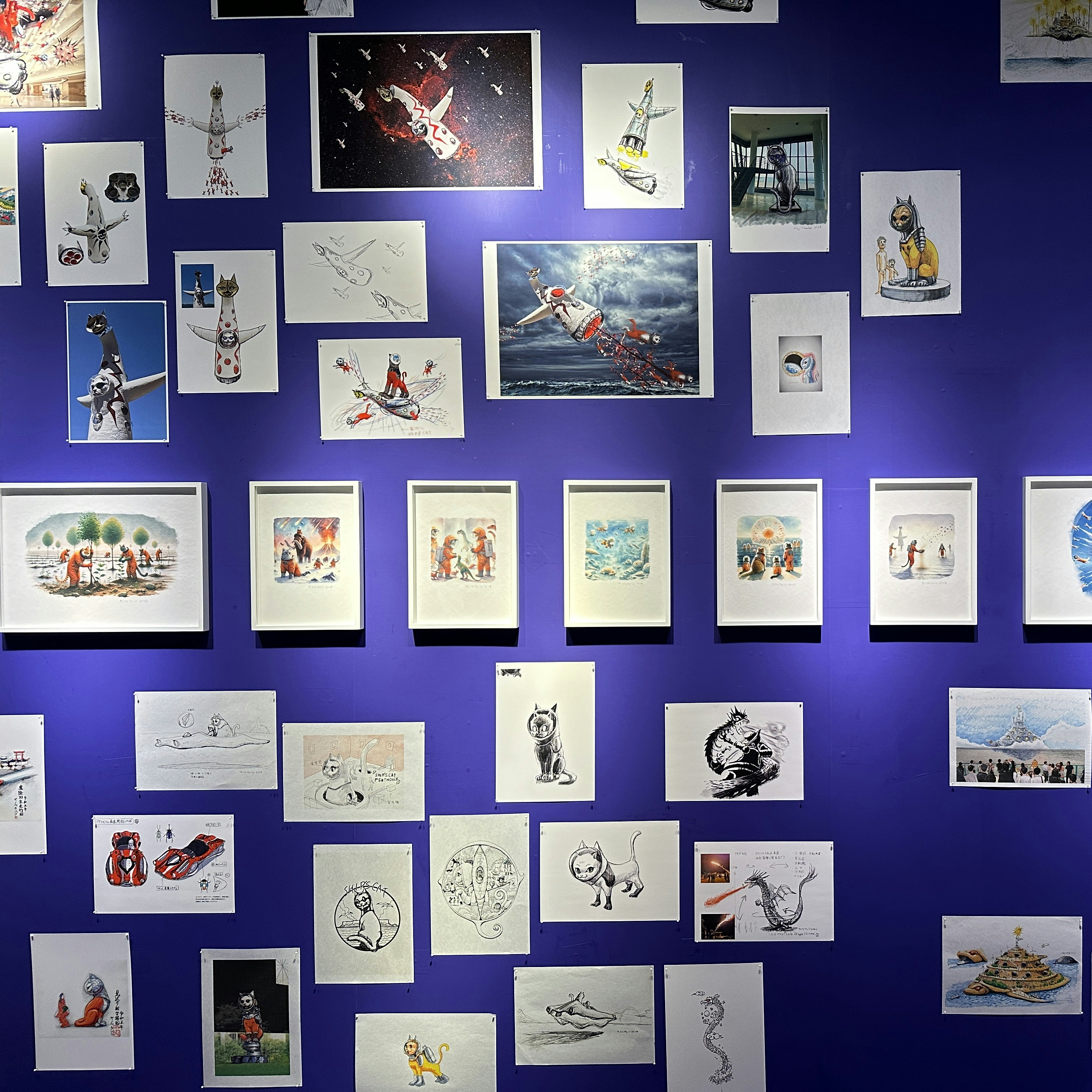 ヤノベは現在、全長9メートルの作品《BIG CAT BANG》を東京・銀座の「GINZA SIX」で展示中であり、本展はその対となるもの。《BIG CAT BANG》の背景にある物語やディティールが、図式化された直筆壁画や映像、AIを利用して描いたドローイングなどによって示されている。また、庭園や1階のアトリエ部分にも作品が点在しているため、じっくりと探し出してみてほしい。