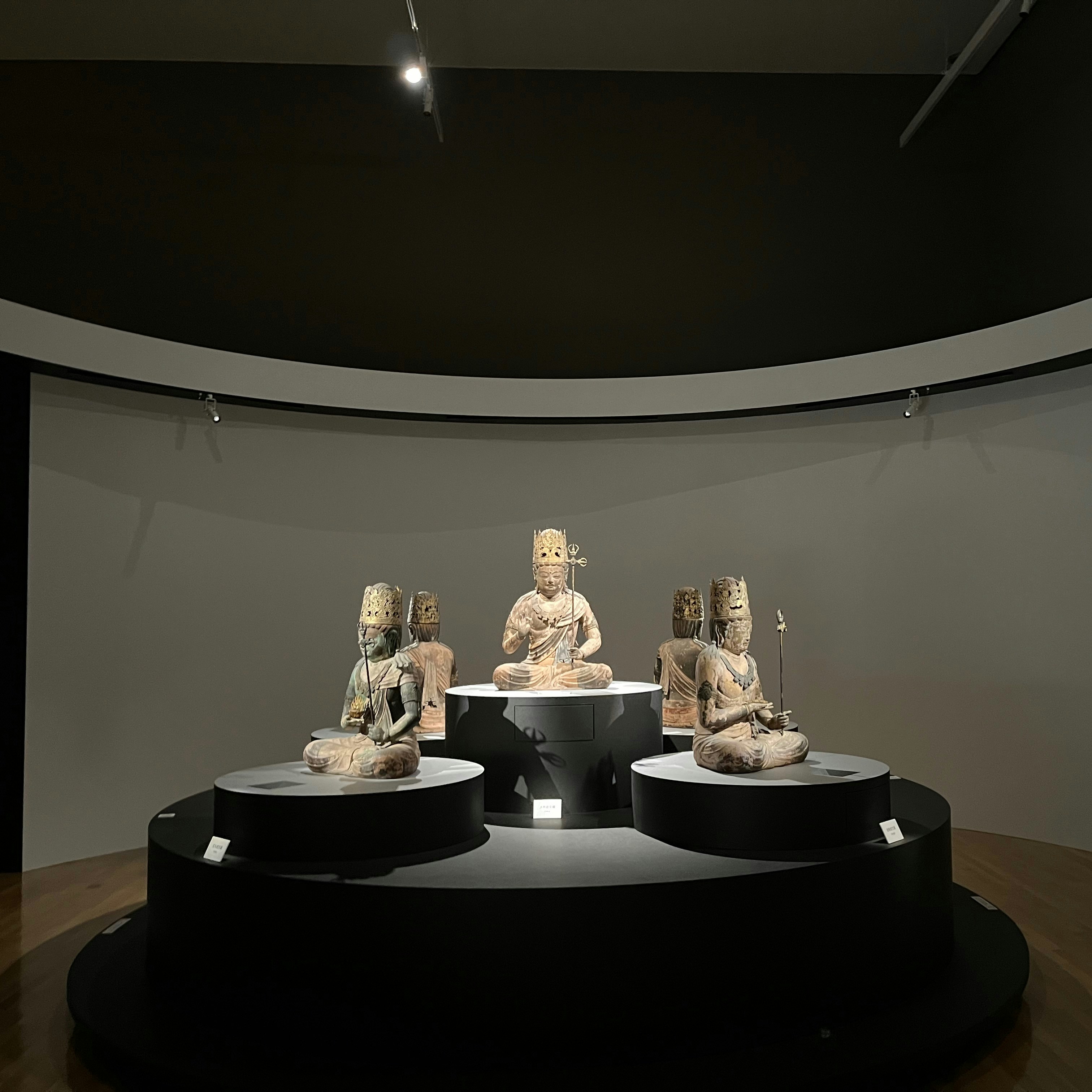 さらに神護寺でつくられたなかで、現在残っている最古の密教仏像とされる《五大虚空蔵菩薩坐像》(平安時代、9世紀)も展示。切れ長の目やふくよかな唇などが醸し出す、柔和な表情に祈りの姿を見てほしい。
