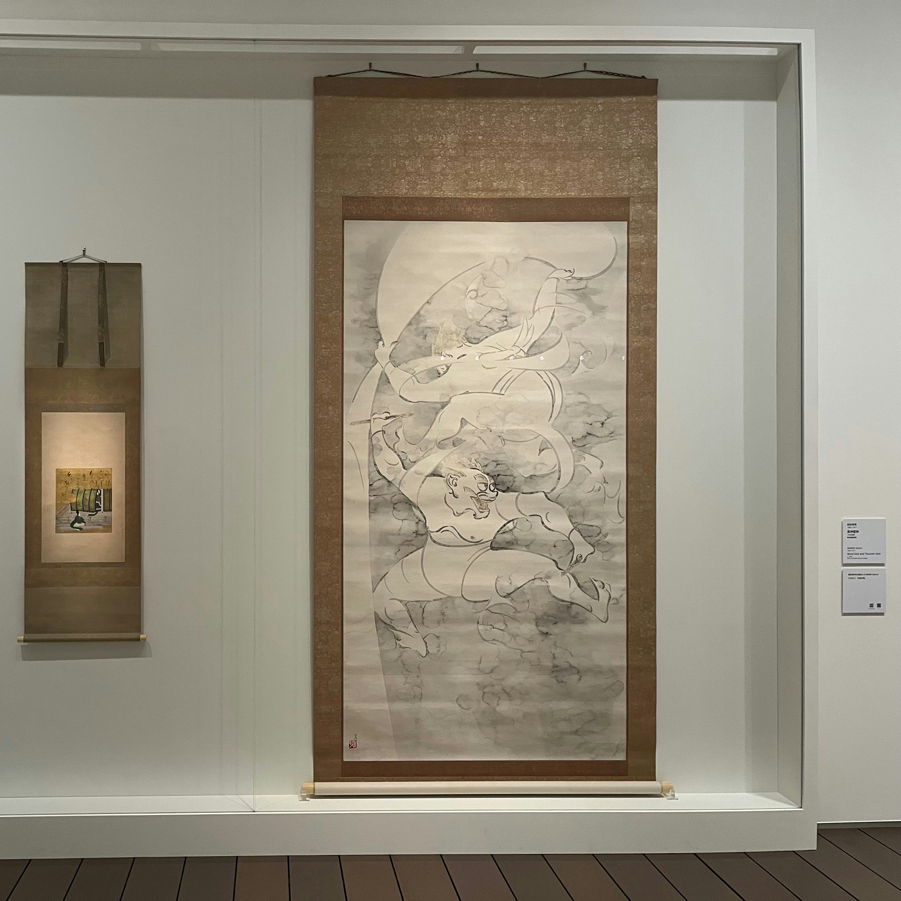 ほかにも前田青邨《風神雷神》(1949頃)と、前田が所有していた伝 俵屋宗達《伊勢物語図色紙 彦星》(17世紀)を併置したり、海老原喜之助の素描と、海老原が所有していたピカソのブロンズを併置したりと、作家の所有していた作品をともに見せることで影響関係を伺わせる展示が並ぶ。