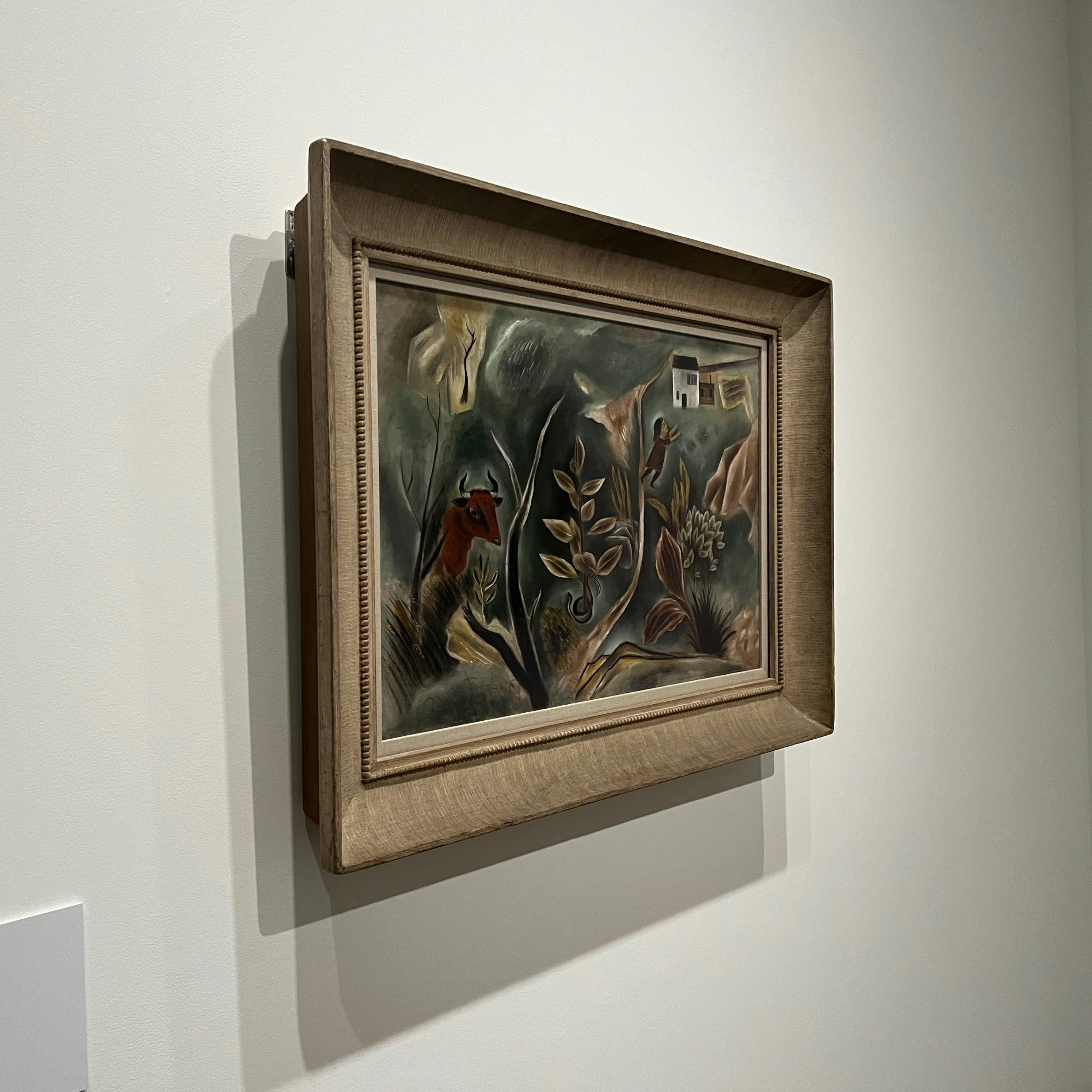 また、ニューヨークのギャラリスト、エディス・グレガー・ハルバートが設えたという、国吉康雄《夢》(1922)のせり出すようなカーブが目を引く額や、額をつけないことにこだわりのあった野見山暁治の《あしたの場所》(2008)など、作品をめぐる様々な思惑が現れた額を楽しむことができる。