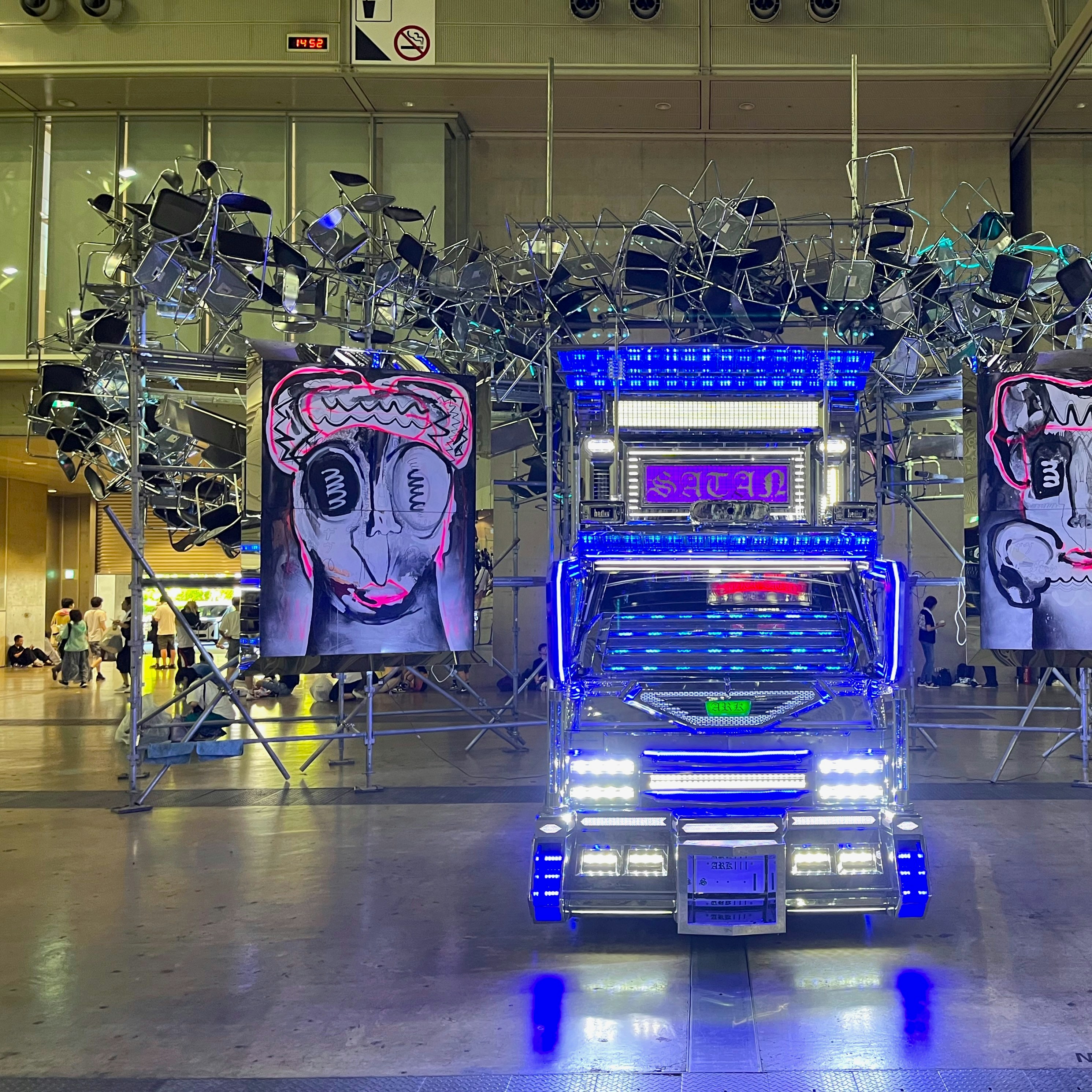 SUMMER SONICの会場内となる幕張メッセ展示ホール9・10では、18日までSILVER SATAN (ART TRUCK)+DUVによる作品《NVOVU -ンモ"ユ"》を展示。