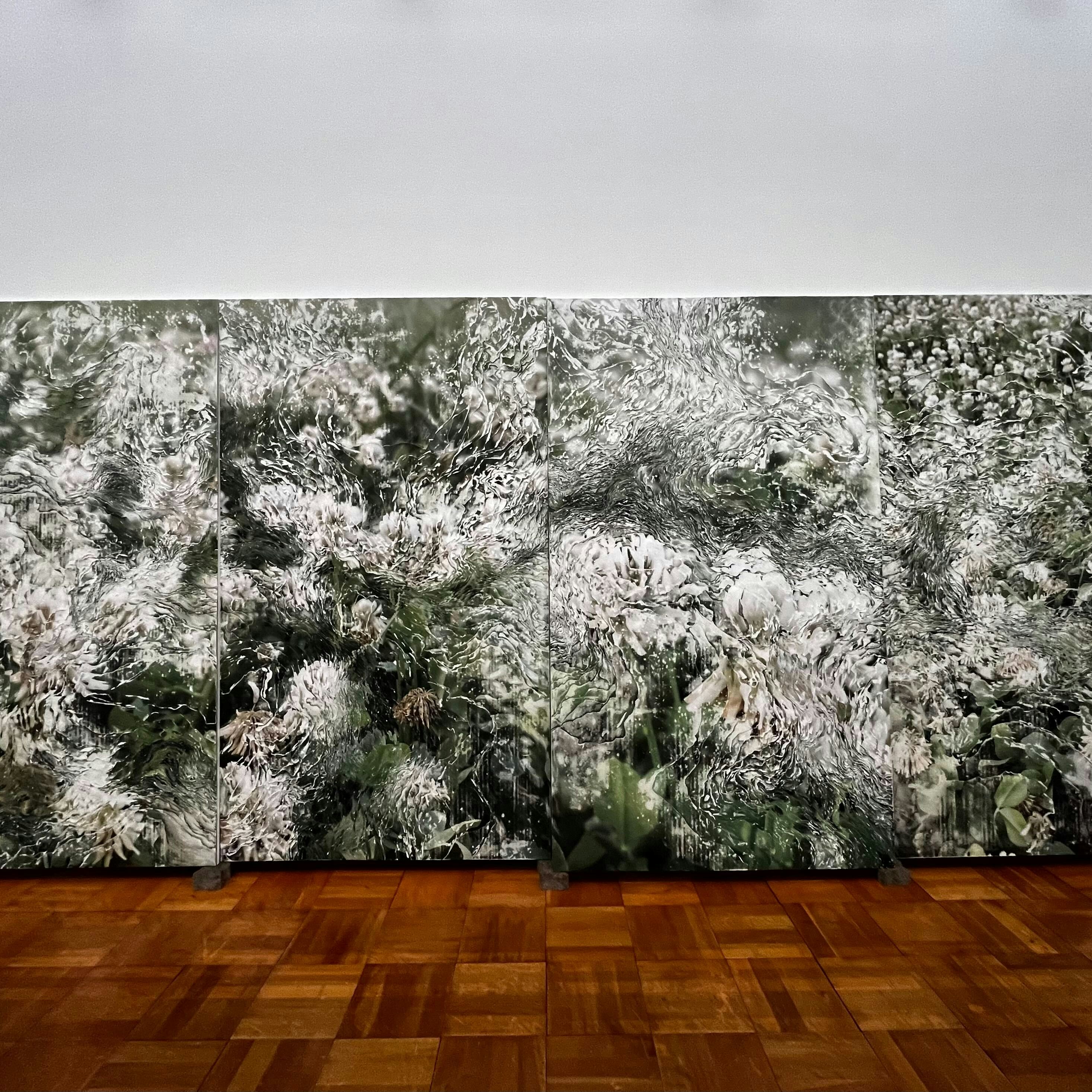 人間の移動に影響を受け、持ち込まれた土地で野草となった植物を「帰化植物」と言うが、Nerholはそこに人間と自然の関係性や歴史を見出している。足元によく生えているシロツメクサを映した《Trifolium repens》(2022)は、帰化植物シリーズのなかでも最大サイズの作品だ。これらのシリーズの展示方法や展示されている目線の高さにも細やかな演出が感じられる。