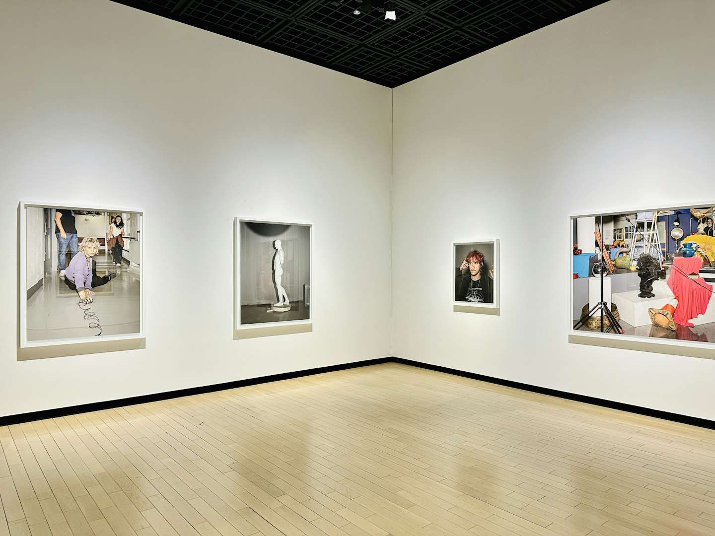 最後の部屋に展示された世界初公開作品となる最新シリーズ「Advice for Young Artists」は白眉だ。このシリーズは、2022年から24年にかけて全米の美術学校を舞台に撮影されたもの。シリーズには人物も含まれているが、特筆すべきは教室やスタジオに置かれたオブジェクトだろう。デッサン用の石膏や様々な静物が組み合わさり構成された画面は、これまでのソスの作品にはない雰囲気を放つ。作品の中にはソス自身の姿も見て取れる。ソスは本作について、「学生になったときの気分を追体験したいと考えた。自分が歳をとったことを実感しており、なぜ写真家となったのか、なぜ写真を撮るのかという『初心』を忘れないようにという思いを込めたもの」と語っている。