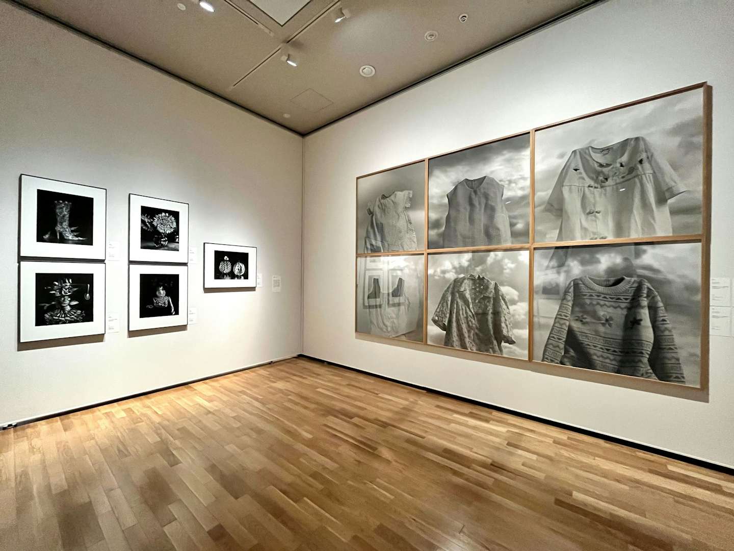 展示風景より、右は石内都の「mother's」シリーズ。自身の母親の遺品を撮影した石内の代表作だ