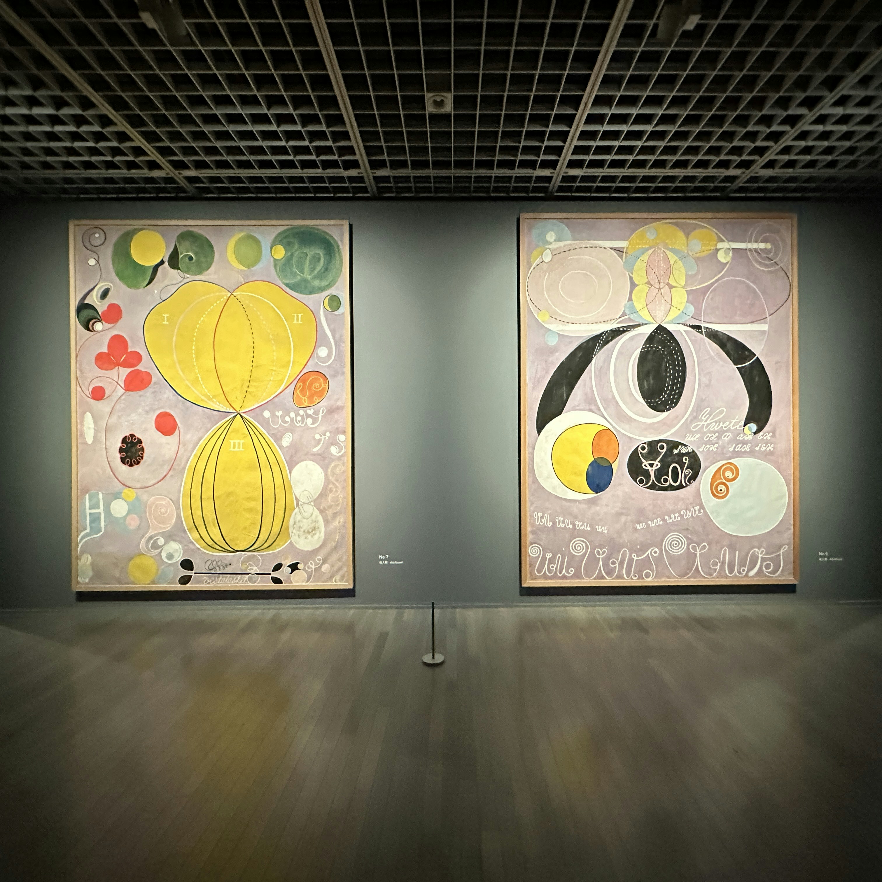 ヒルマ・アフ・クリントはスウェーデンの裕福な家庭に育ち、王立芸術アカデミーを優秀な成績で卒業、職業画家として活動。そのいっぽうで神秘主義思想に傾倒し、交霊術の体験を通してアカデミックな絵画とは異なる抽象表現を生み出した。