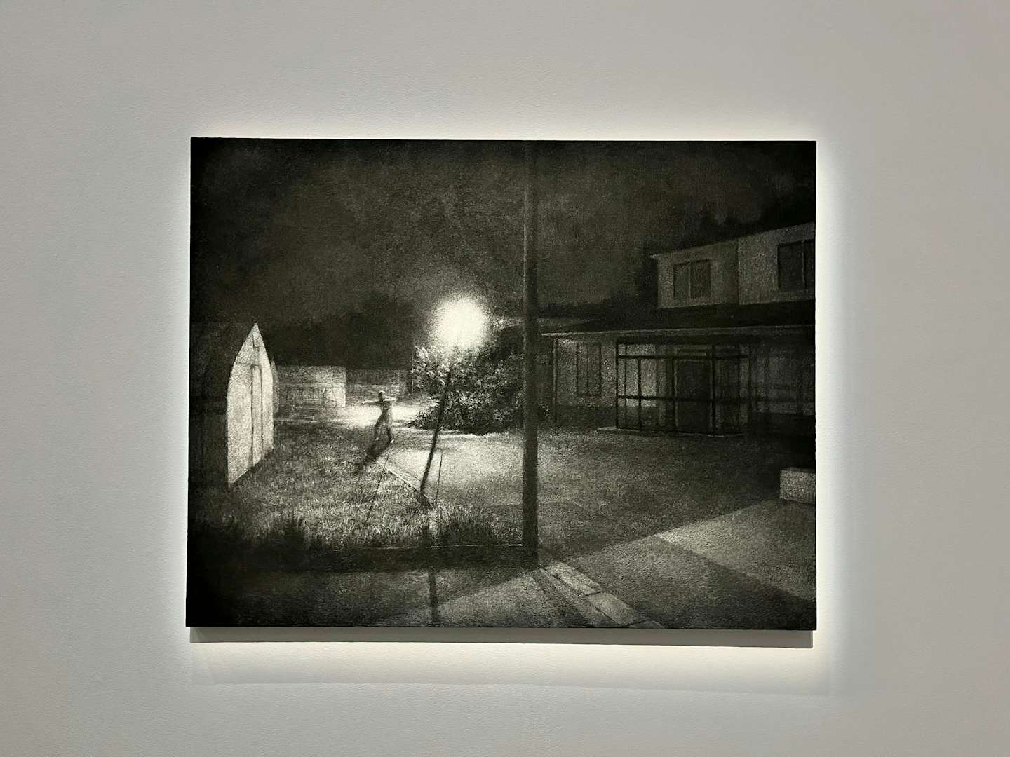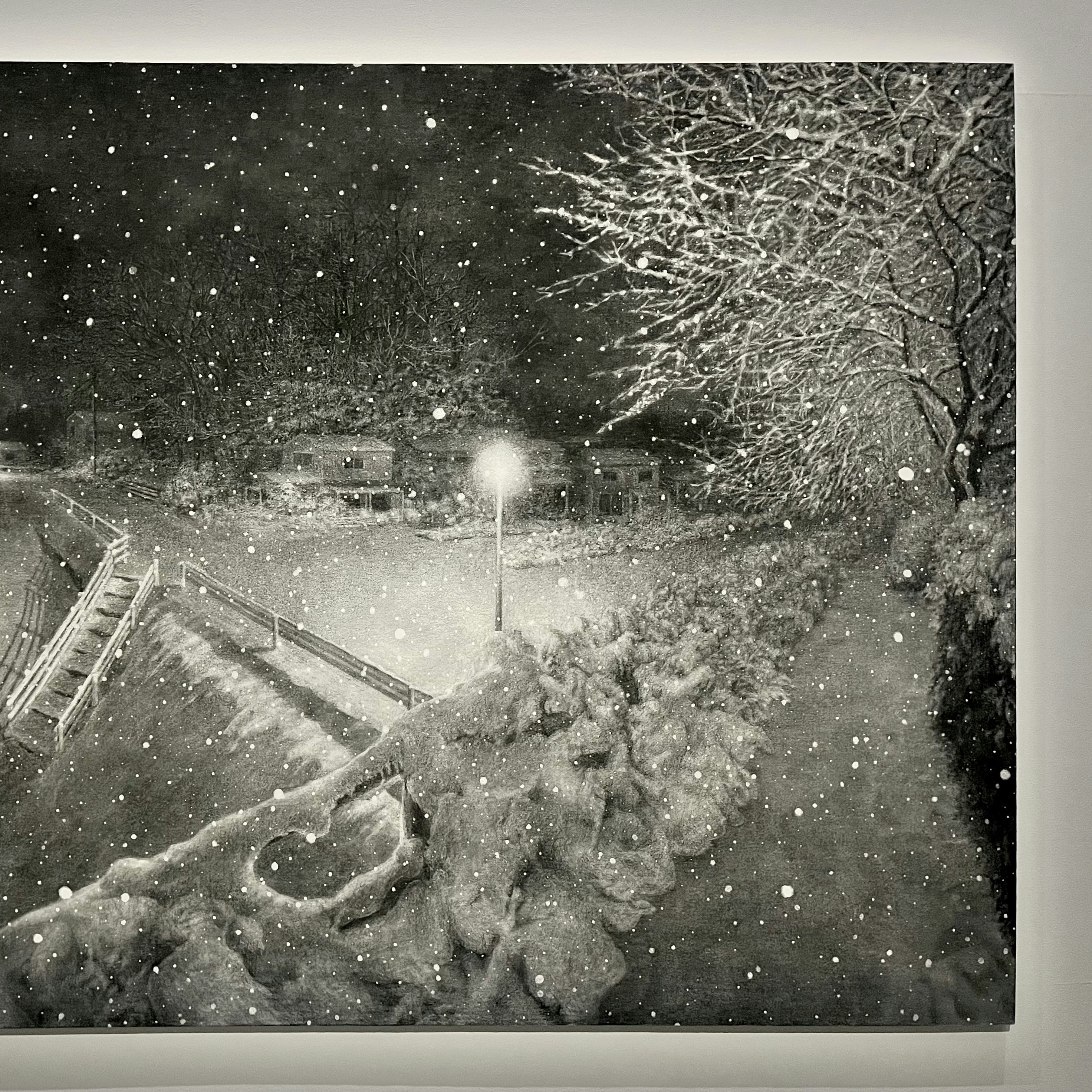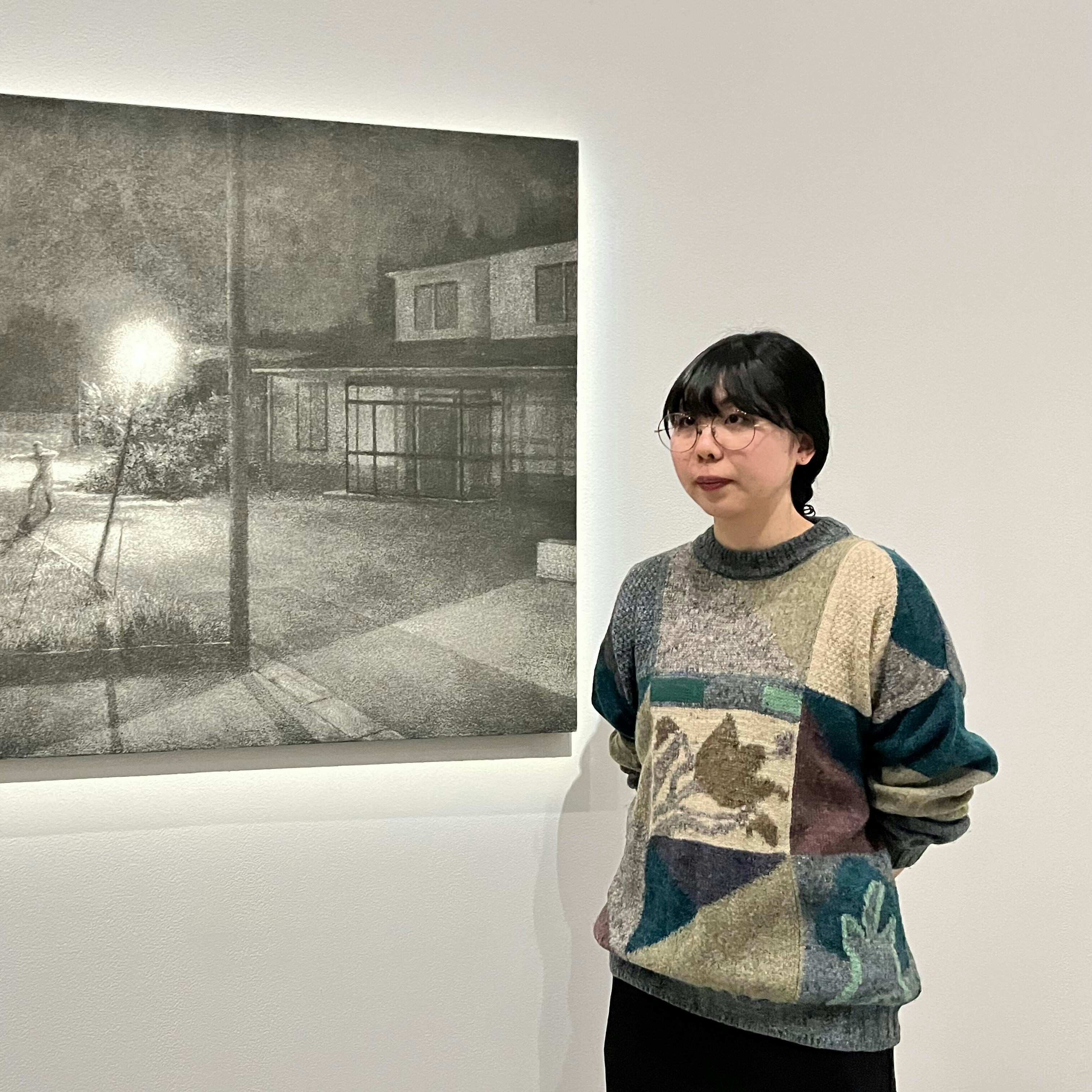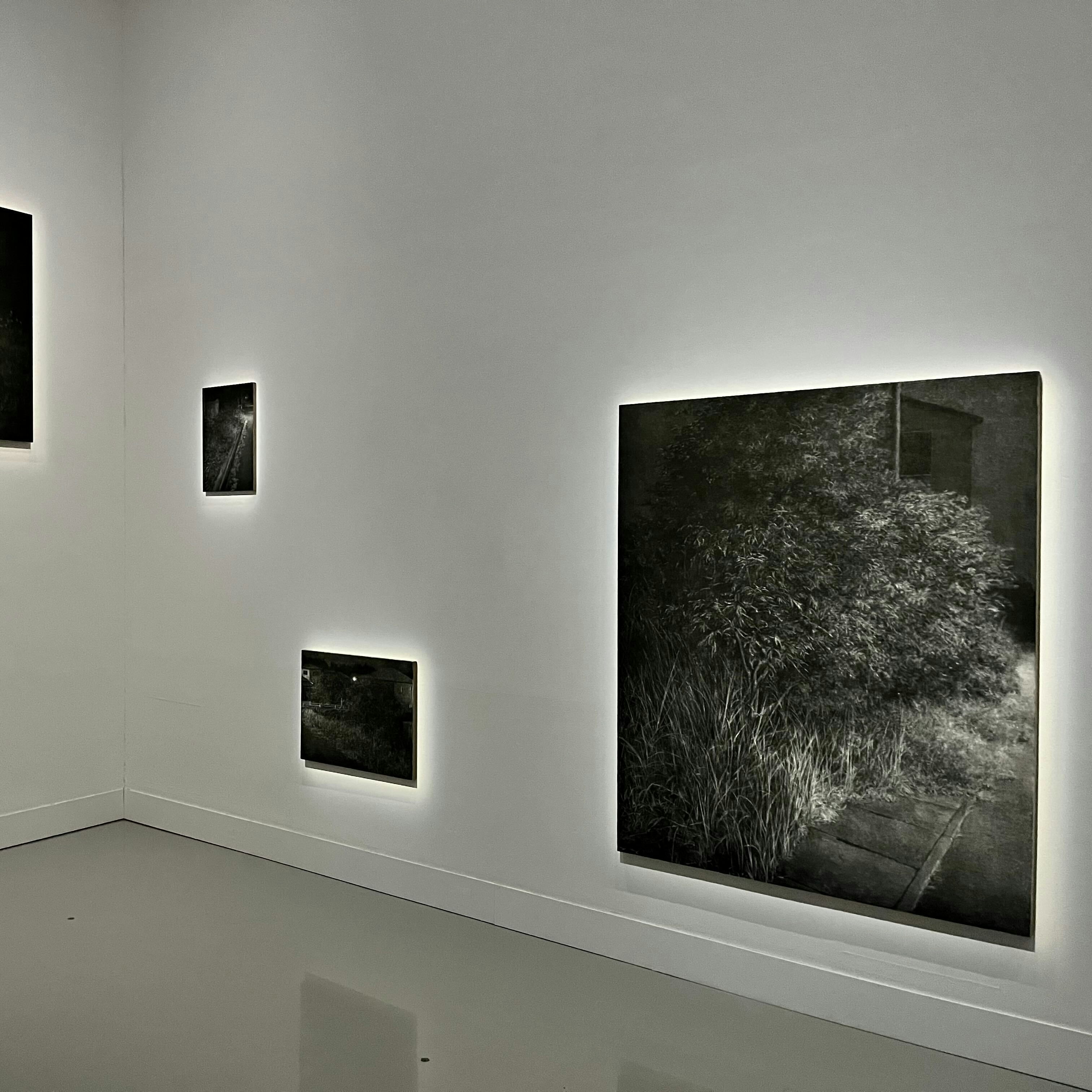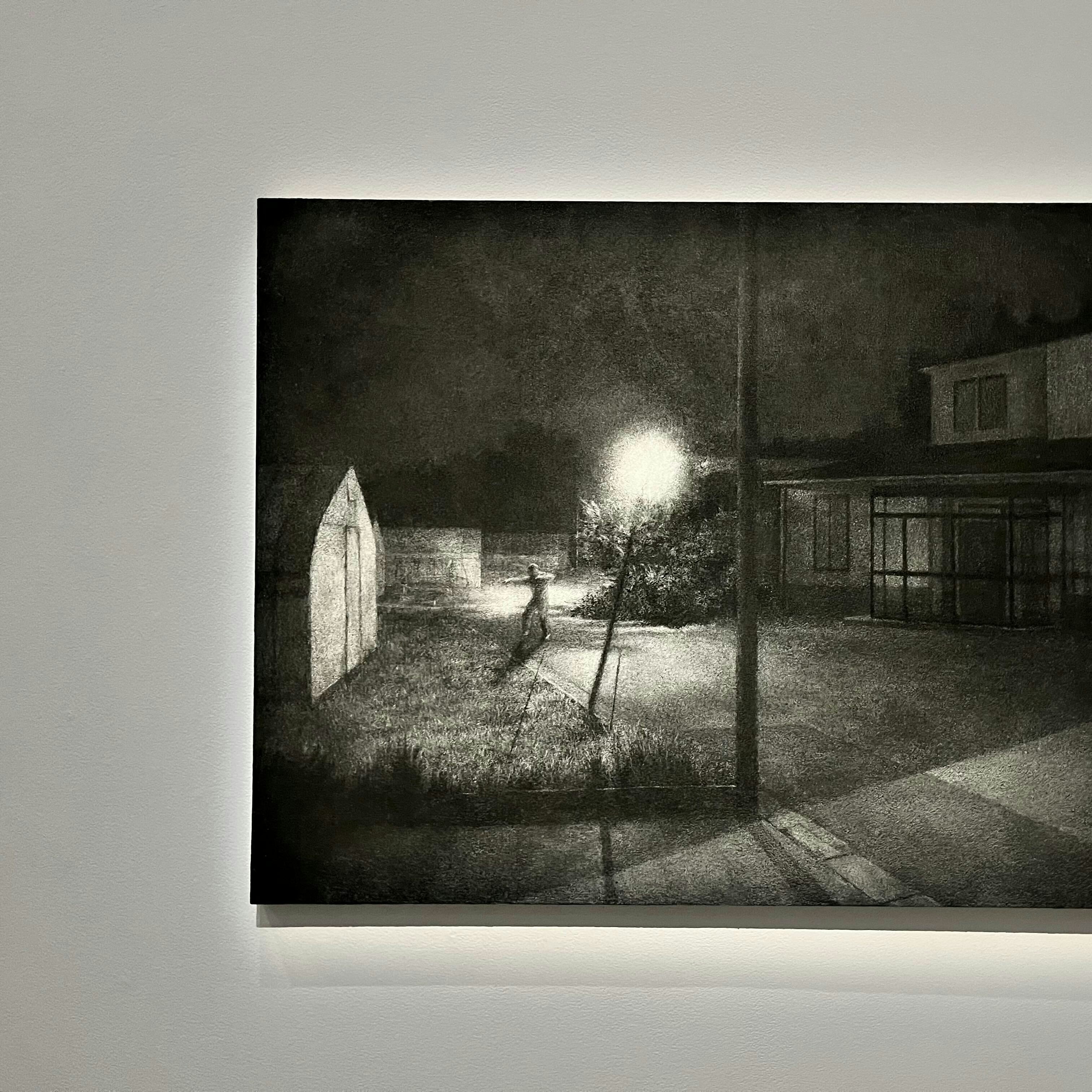 大東は、自身が風景を描くこととなったきっかけのひとつに次のような理由を挙げている。「祖母の住む限界集落に、突如ソーラーパネルが設置されることになりました。もちろん土地の風景は一変。そのような出来事があってから、風景を描くことを通じて、人の営みの痕跡をとらえ、供養をしようとしています」。また、夜の風景を描くのは「その痕跡がより一層露わになるから」であるとも大東は語る。タイトルの「不寝の夜」には、そういった意味が込められているのだ。