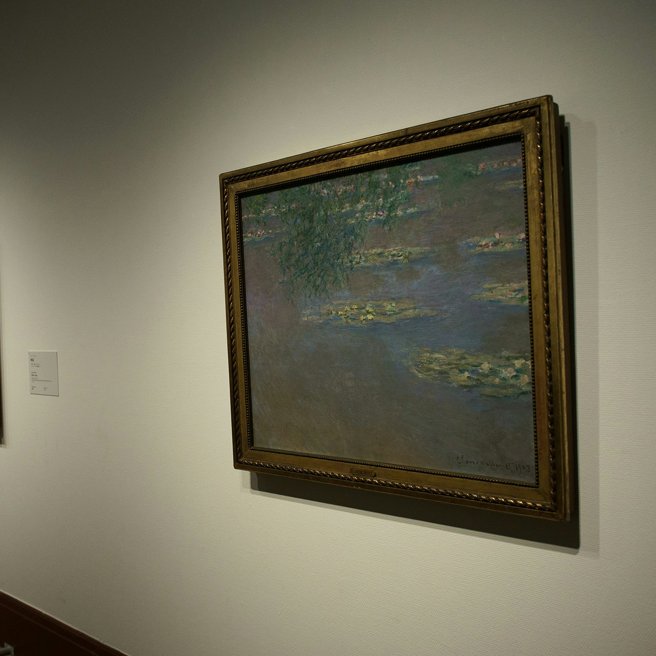 展示は全4章とエピローグで構成される。第1章「セーヌ河から睡蓮の池へ」は、移り住んだジヴェルニーの土地と家を買い取り、終の棲家とした1890年以降に生まれた表現にフォーカスする。彼の画業を通じて主要なモチーフであり続けたセーヌ河に加え、繰り返し訪れたロンドンの風景など、のちの「睡蓮」の表現を予見させる水面の反映による鏡像に主眼が置かれた作品の数々が集結した。