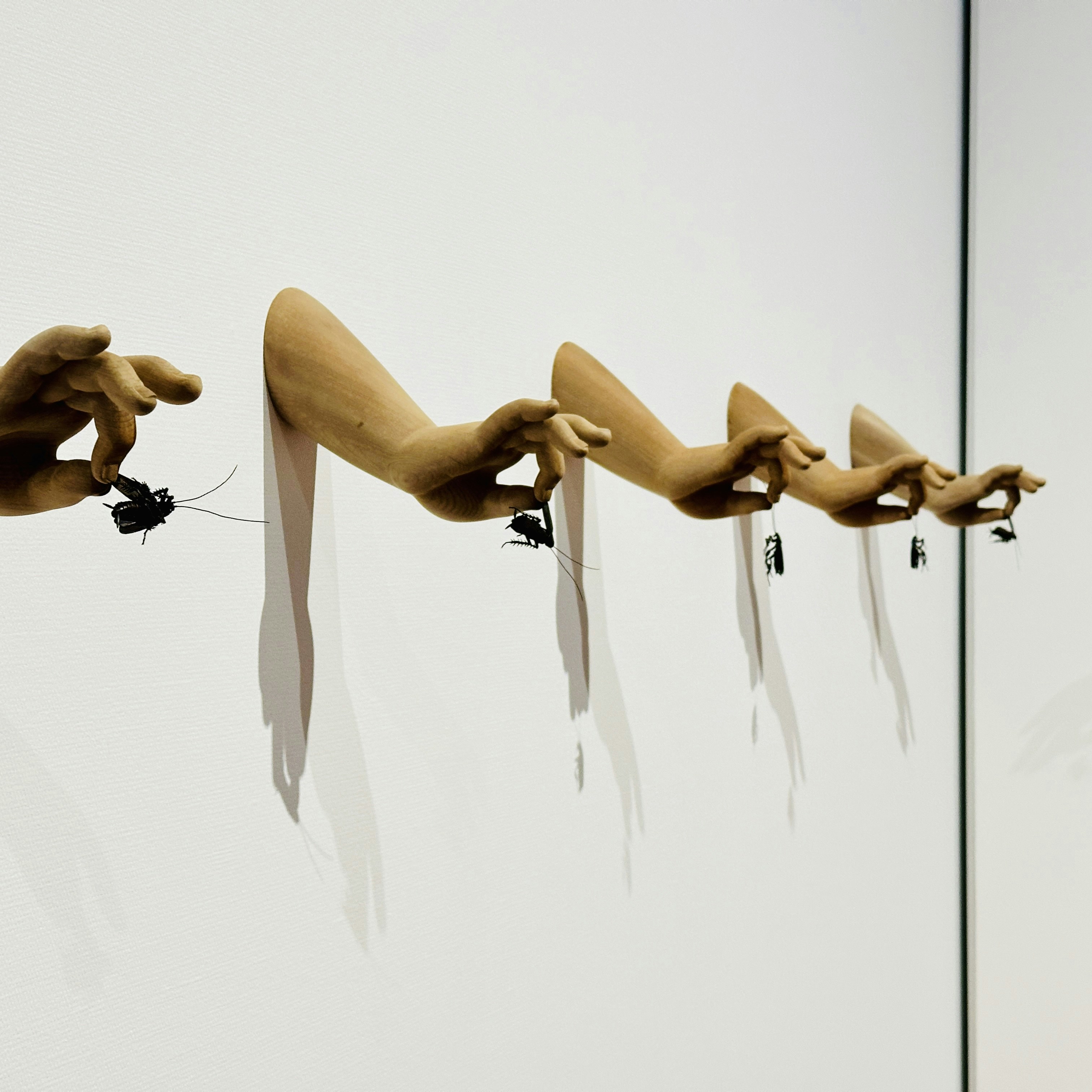 本章では、このほか、マルセル・デュシャンの《自転車の車輪》(1913/1964)や草間彌生の《マカロニ・コート》(1963)、三島喜美代の《Work 23-C》(2023)など、日常生活と連なる素材やモチーフを扱った作品が並ぶ。