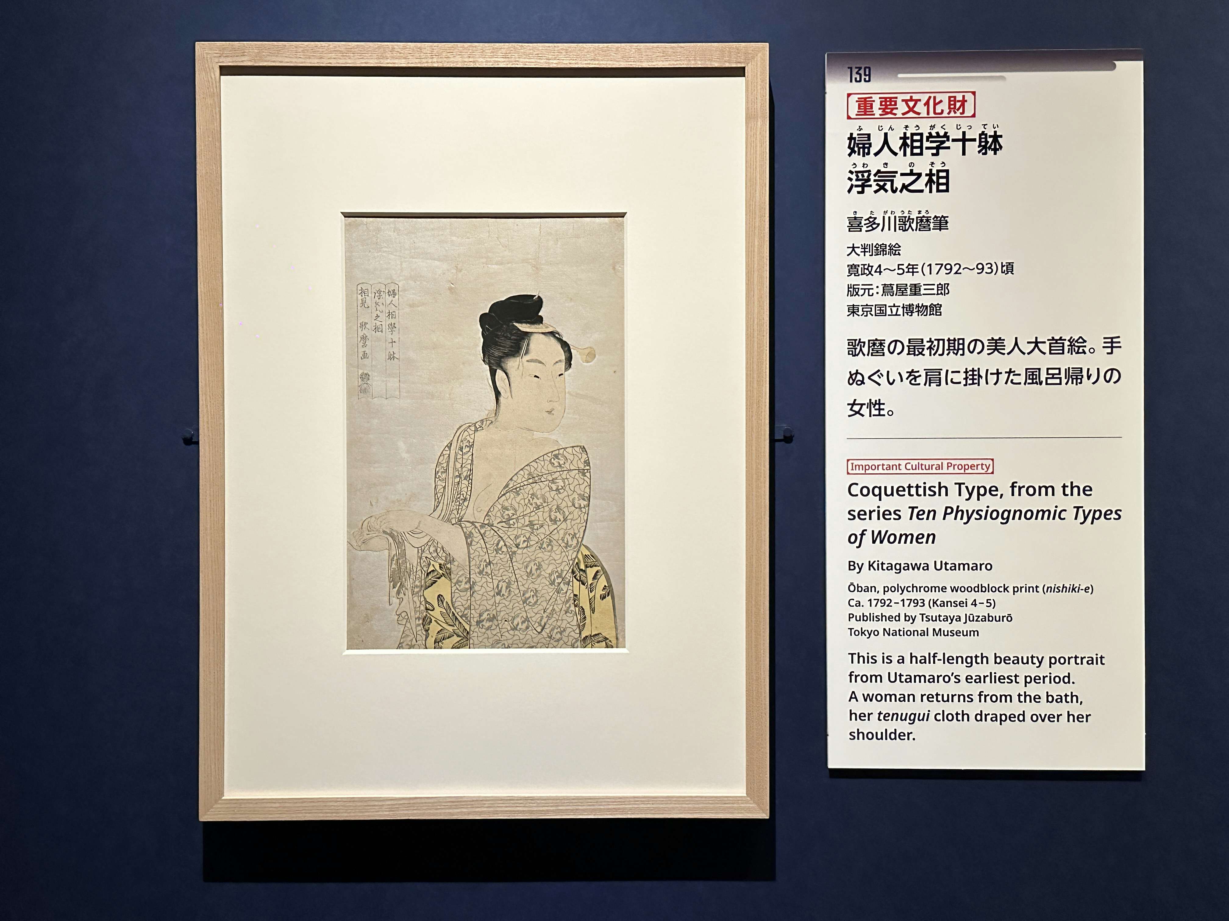 展示風景より、喜多川歌麿《婦人相学十躰浮気之相》(重要文化財、1792〜93頃)