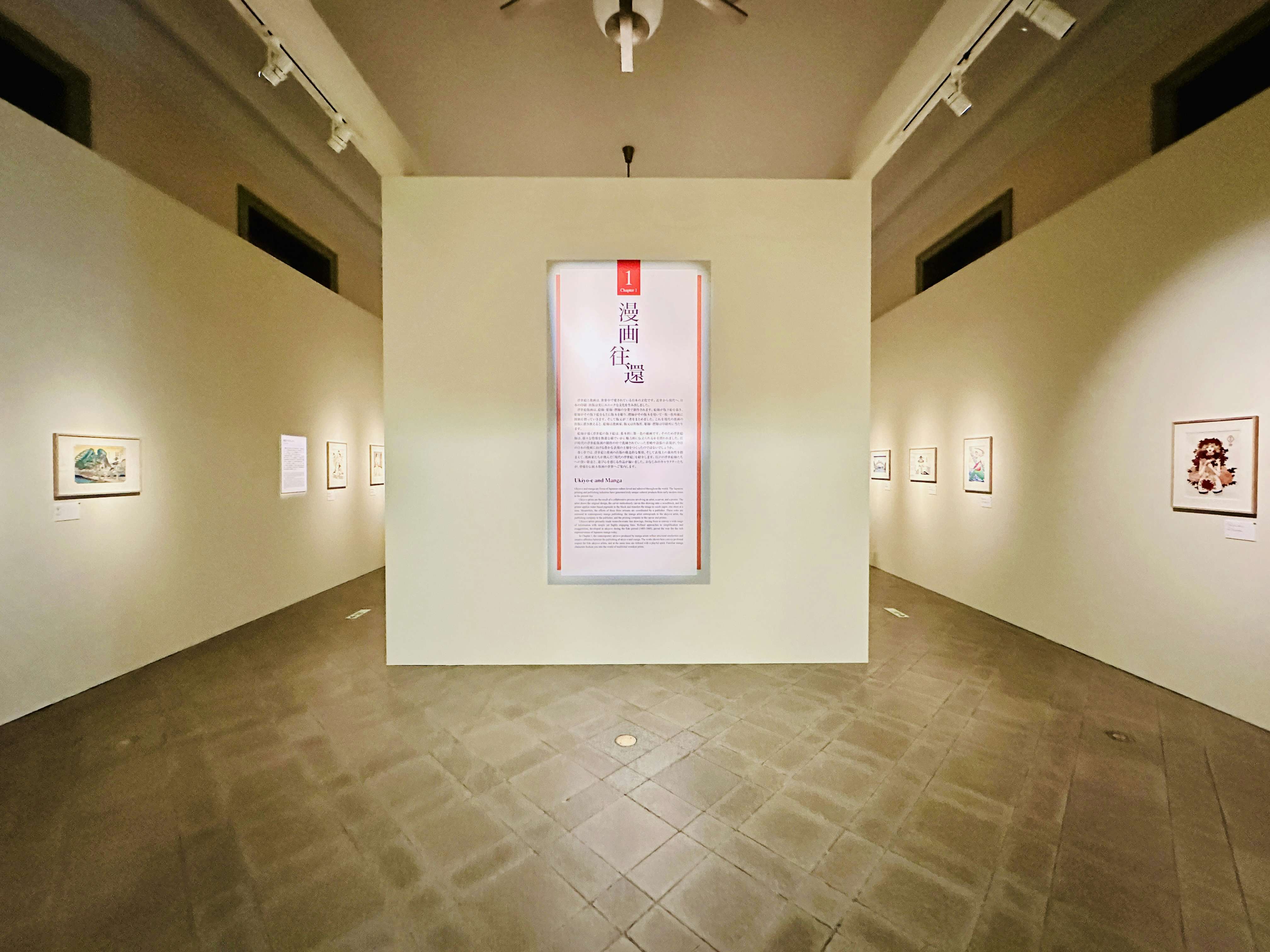 展示風景より、右が楳図かずお《ぐわし大首絵 雲母摺之圖》(2009)