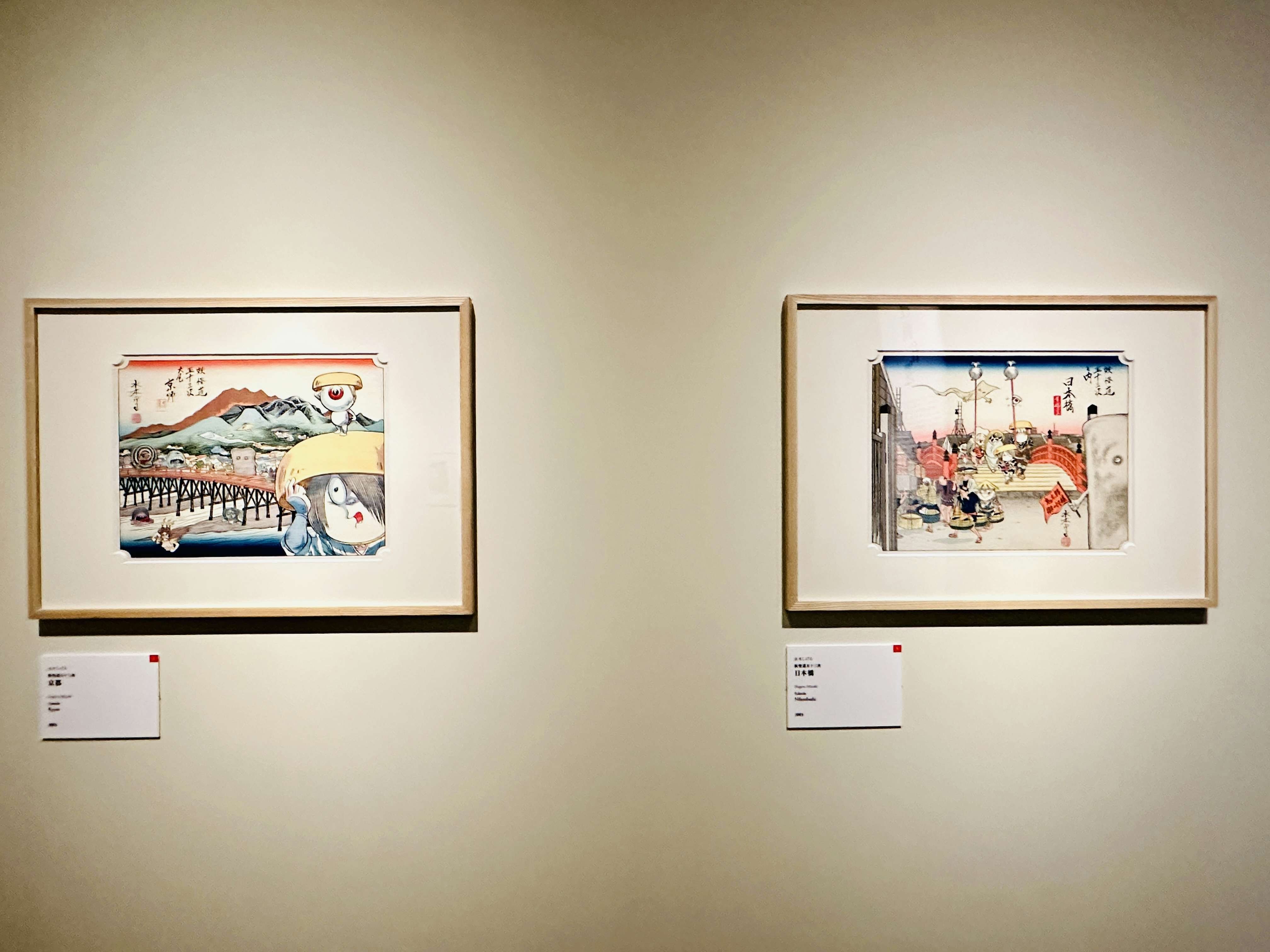 展示風景より、水木しげる「妖怪道五十三次」の京都と日本橋(ともに2003)